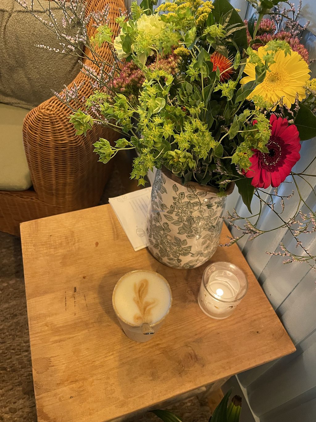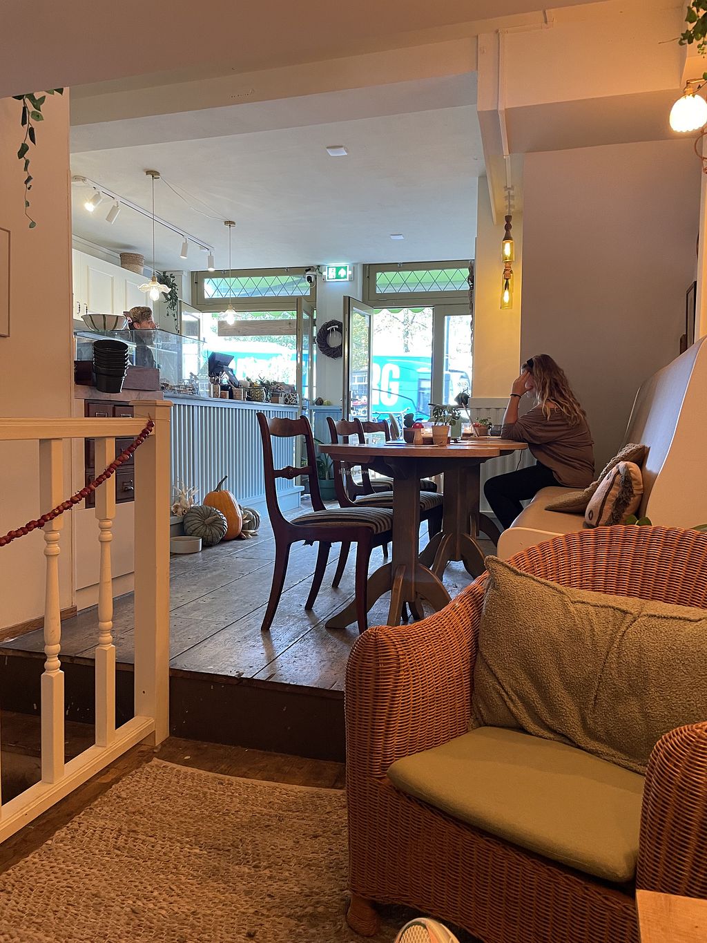 New place, they call it an extension of your living room. I can imagine that for the owners it is. They work on a laptop there, have friends over and 2 large dogs that are cute, but are in the way and smell very bad unfortunately. A vegan cake, plant based milk at a surcharge (oat and coconut), acai bowl and a sandwich. Some things can be made vegan.