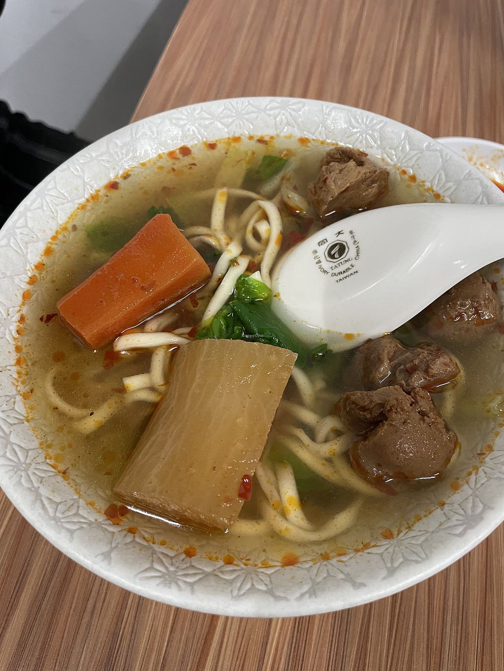 Spicy meatball noodle soupp