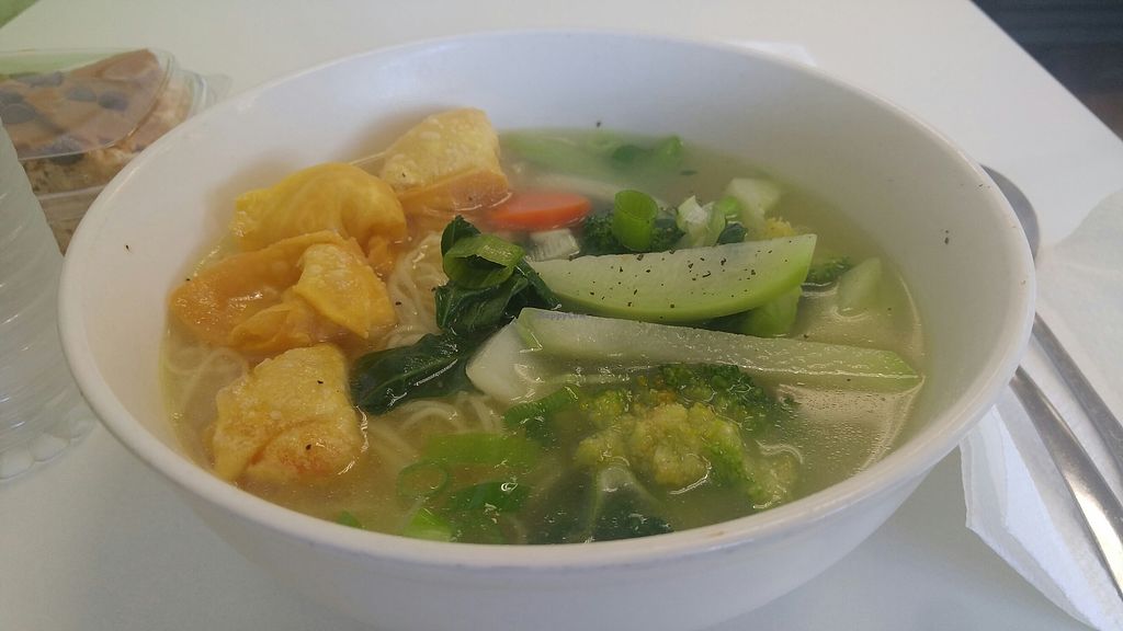 Stopped by for a quick lunch, this is a nice little vegan spot that offers a little bit of everything, we had a wonton noodle soup and a veggie Sub, they were pretty good. They alphabet several tables inside and out, also some snacks and dessert options, a place where you can find some healthy stuffs quicks, and still affordable. The boss and the staff are very nice people, one full of energy another calm and peaceful. Loved it!