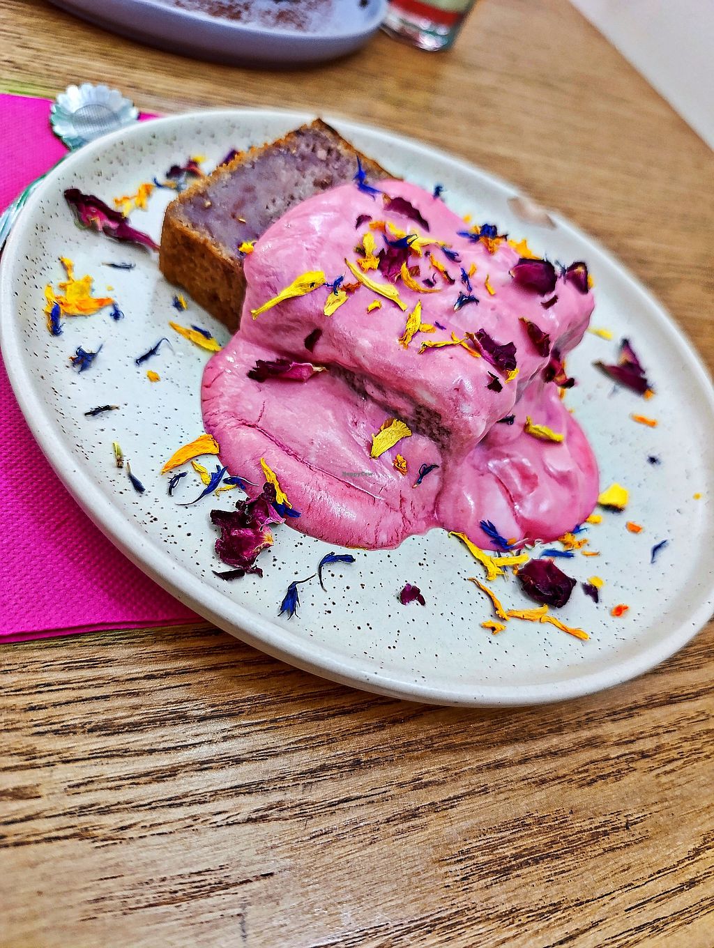 Sadly two of the mentioned things aren’t vegan and so I didn’t get pancakes (tbh I thought they will make them vegan, as we all know, it’s not a big deal!), but a piece of vegan cake instead and a vegetarian toast without the feta. That was a little disappointing.