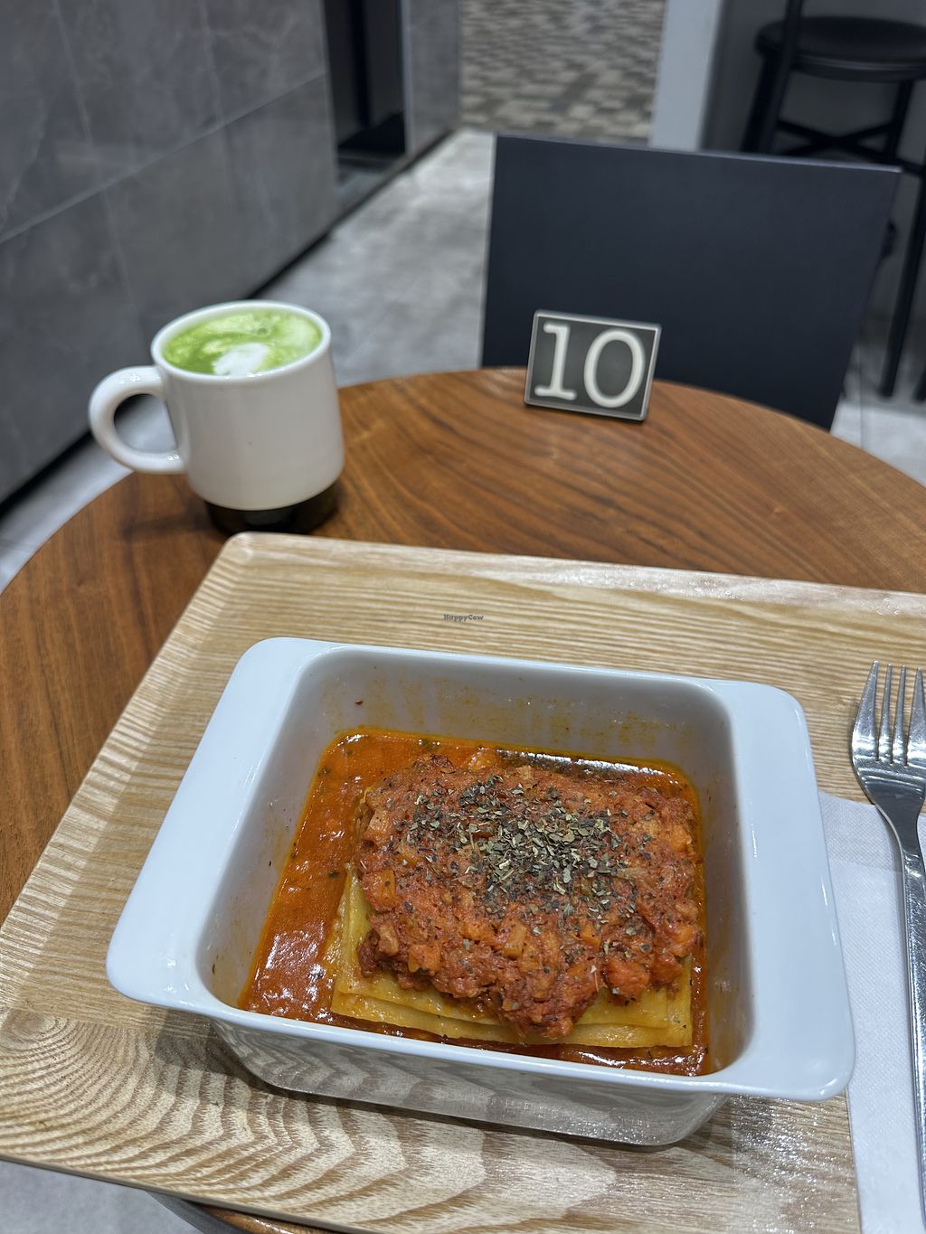 I had a vegan lasagna and iced soy latte. They were delicious.