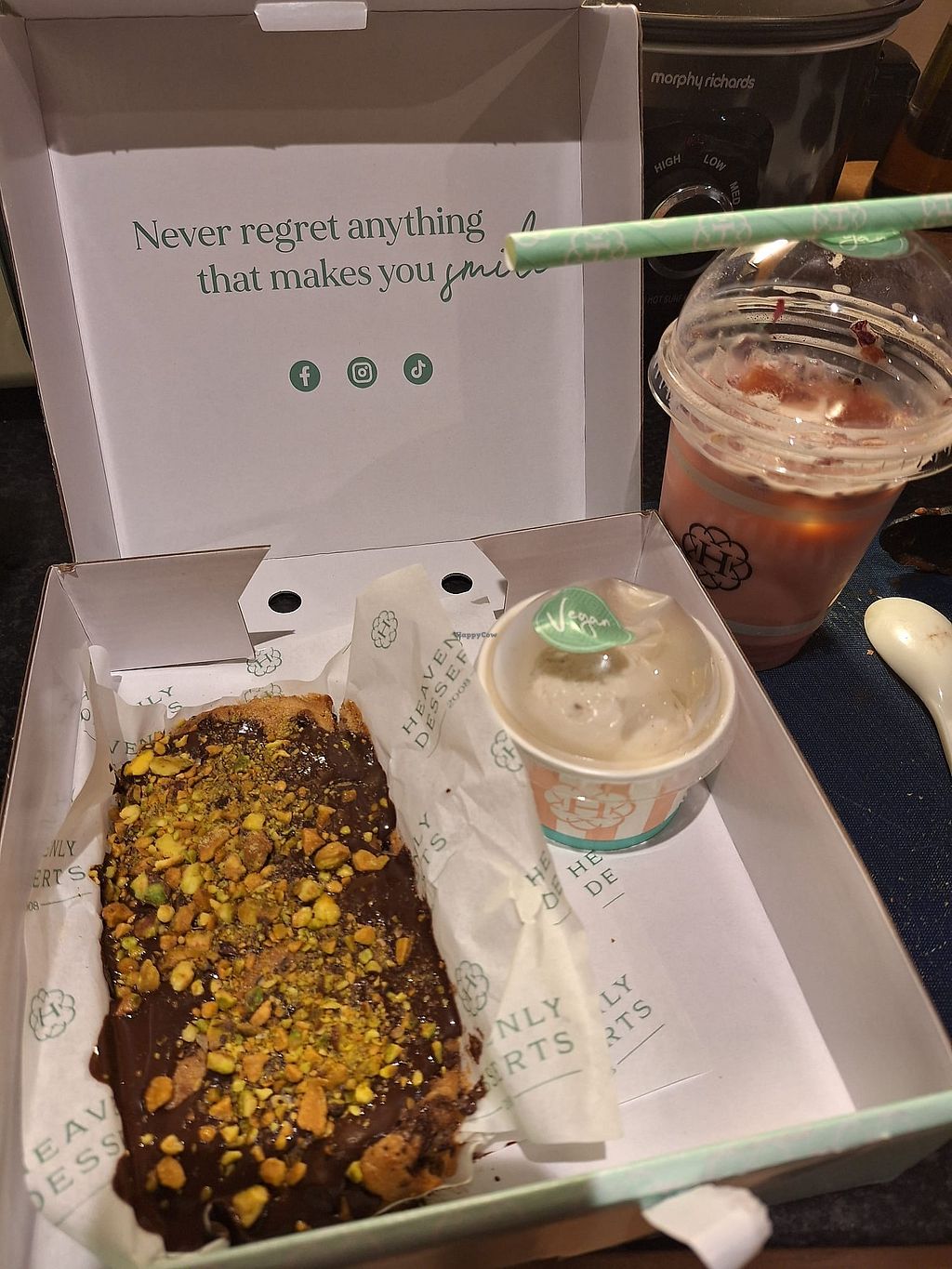 Vegan cookie dough with dark chocolate, pistachios and vanilla gelato.…