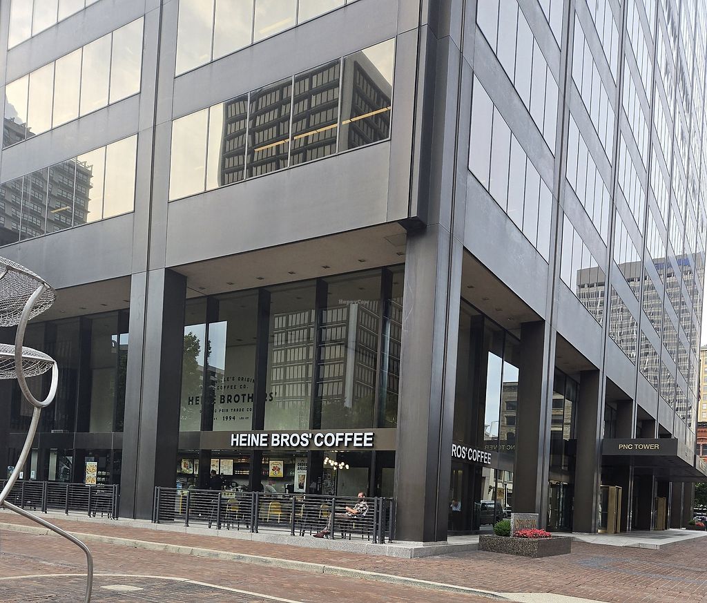 Chain coffee shop located inside of the PNC Building. Has plant milks for vegan drinks and some vegan muffin choices. Open Mon-Fri 6:30am-6:00pm, Sat 7:30am-2:00pm. Closed Sun.