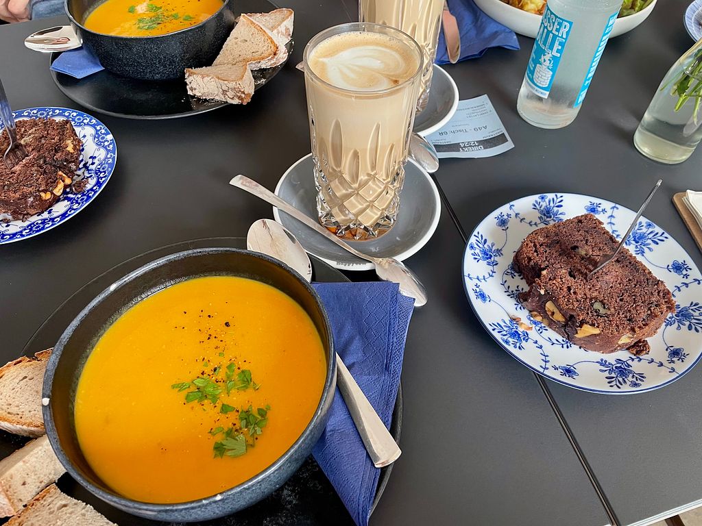 Breakfast and brunch café offering vegan cakes, vegan breakfast, and vegan dishes such as soups and lentil lasagna. Open Mon 10:00-17:00, Tue-Sat 07:30-17:00, Sun 10:00-05:00. Closed Sat.