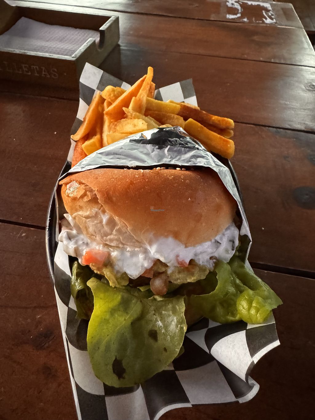 Read moreHe has three different vegan options. We had the Burger with Falafel and Guacamole.