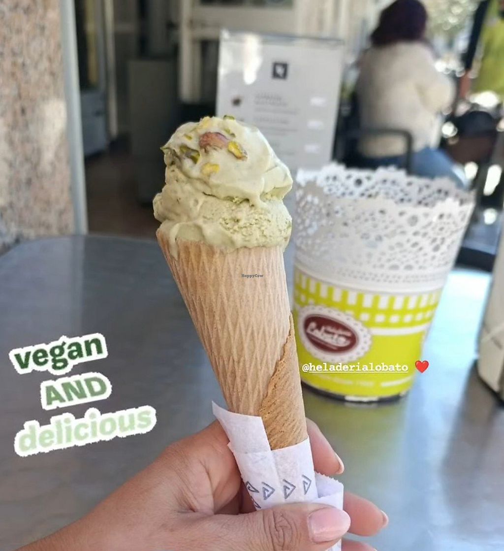 Una heladería de pueblo suele ofrecerte helados de frutas como opción vegana, o chocolate negro, pero en Lobato hacen el mejor helado de pistacho vegano que hayas probado, a veces tienen sabor "llave ácida" y por si fuera poco....conos de galleta veganos y sin gluten. El precio es inmejorable y están buenísimos. Las chicas son en anotadoras.