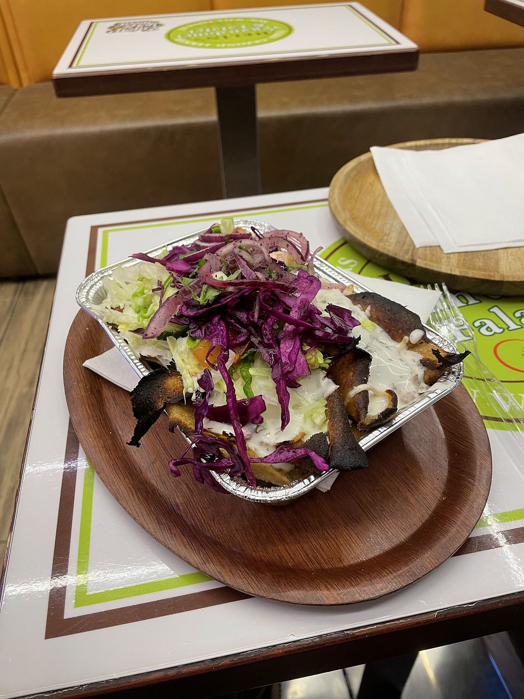 Vegan kapsalon döner with vegan sauce (somewhere under the vegetables)…
