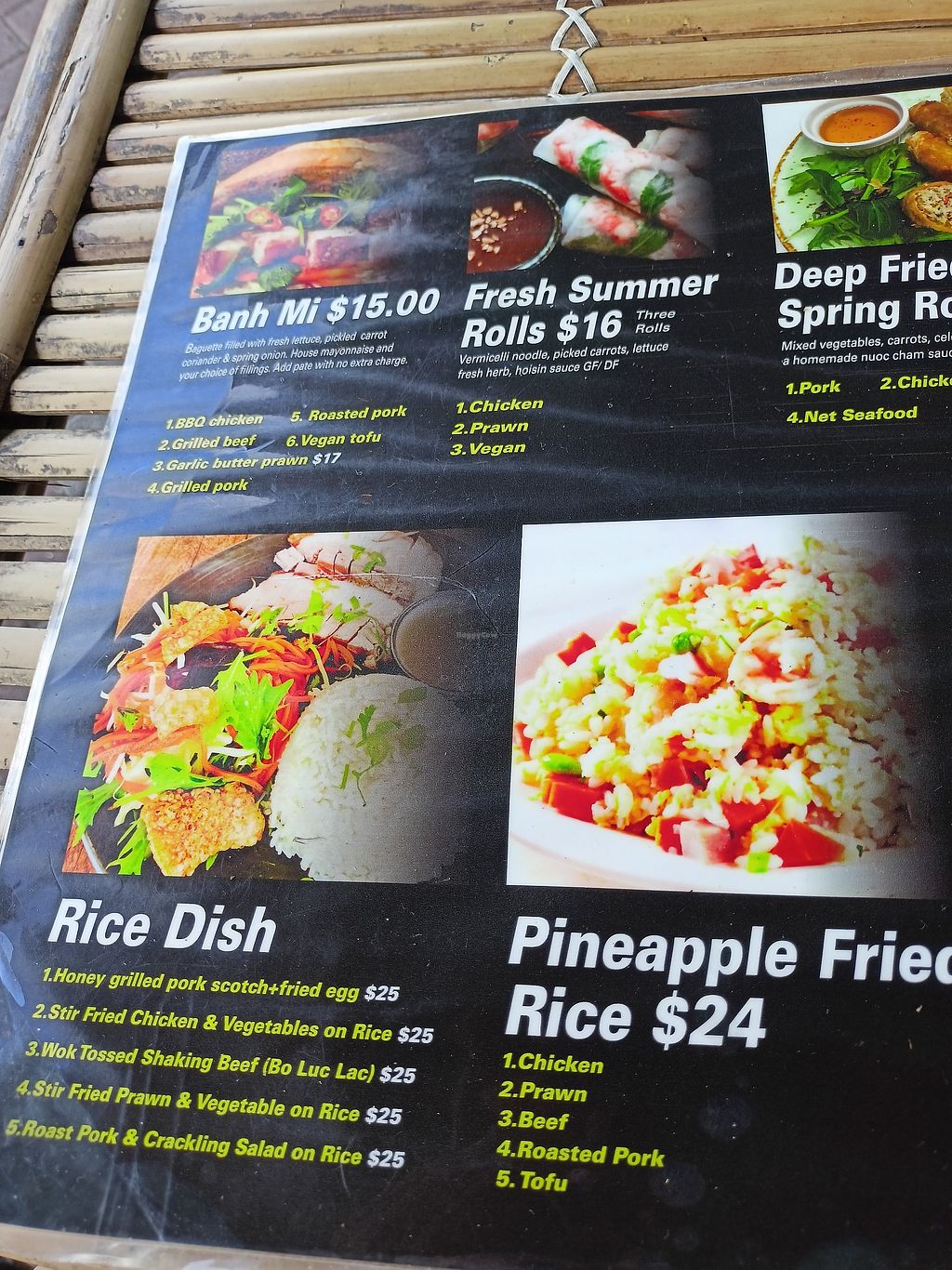Large separate vegan menu with lots of different options. We had the tofu fried rice (make sure you specify vegan/no egg), rice paper rolls and tofu banh mi.