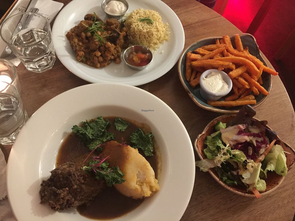 Haggis, chickpea and eggplant curry, sweet poto fries and garlic aioli…