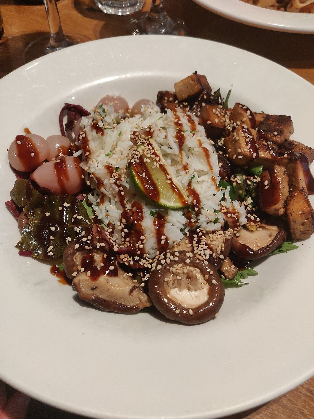 Mains on mushroom and kale linguine and a tofu teriyaki bowl. Both full of flavour and excellent quality.