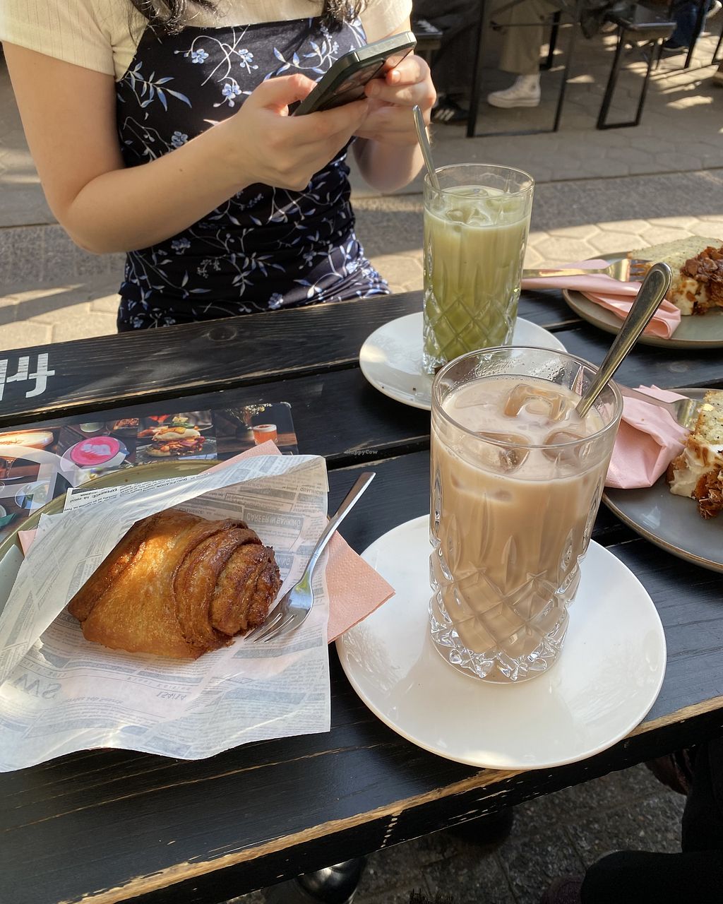 Man kann richtig schön draußen sitzen, vegane Auswahl ist gut, sehr leckeres Gebäck und Getränke mit Milchalternative (die unveganen sind ausdrücklich beschriftet) 🥰