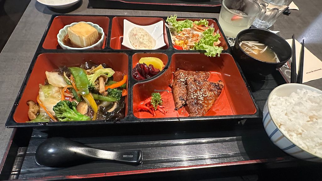 We went there on Father's Day, being more expensive than its cousin Zen restaurant next door, which was closed due to building renovation. The bento set is $21 but full of goodies.. What to say ?? Everything is nice there ! The food taste good, the cooking smelled good in the dining room. We ordered vegan versions of noodles, tempura, tofu and kongbu (sp) a lovely green seaweed. Expensive but excellent... for three people easily top $80.