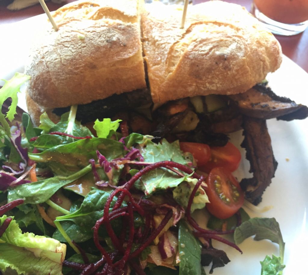 portobello mushroom sandwich with side salad