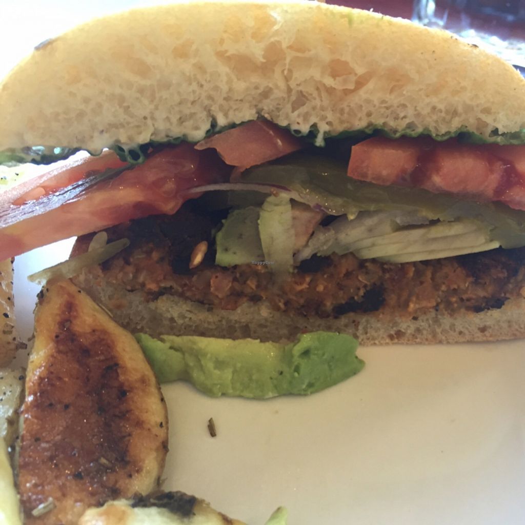 veggie burger with avocado. house made lentil patty