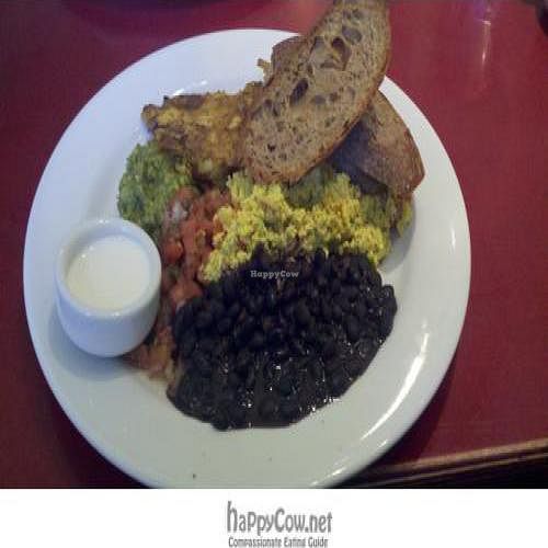 Corn cakes, black beans and hash brown - with guacamole and salsa. It …