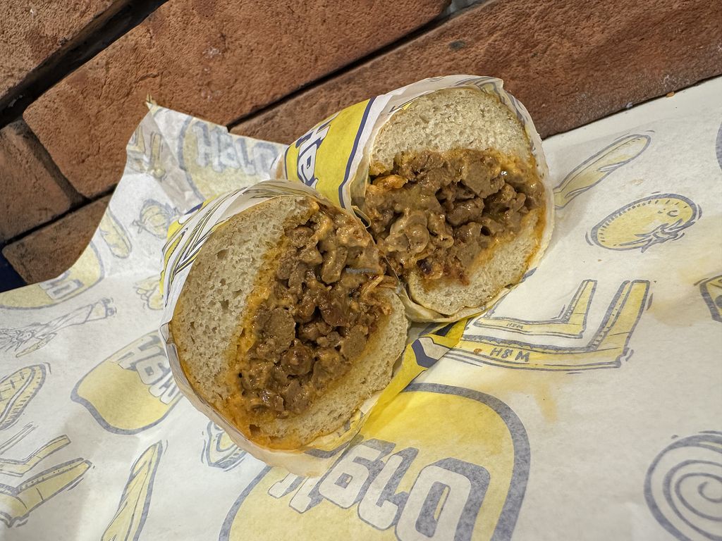 Read moreThere’s a very small menu, even for meat eaters. There are currently 2 options for non meat eaters: a vegan minced steak sandwich, with either a cheese or vegan sauce, or a veggie filled one. I tried the former.