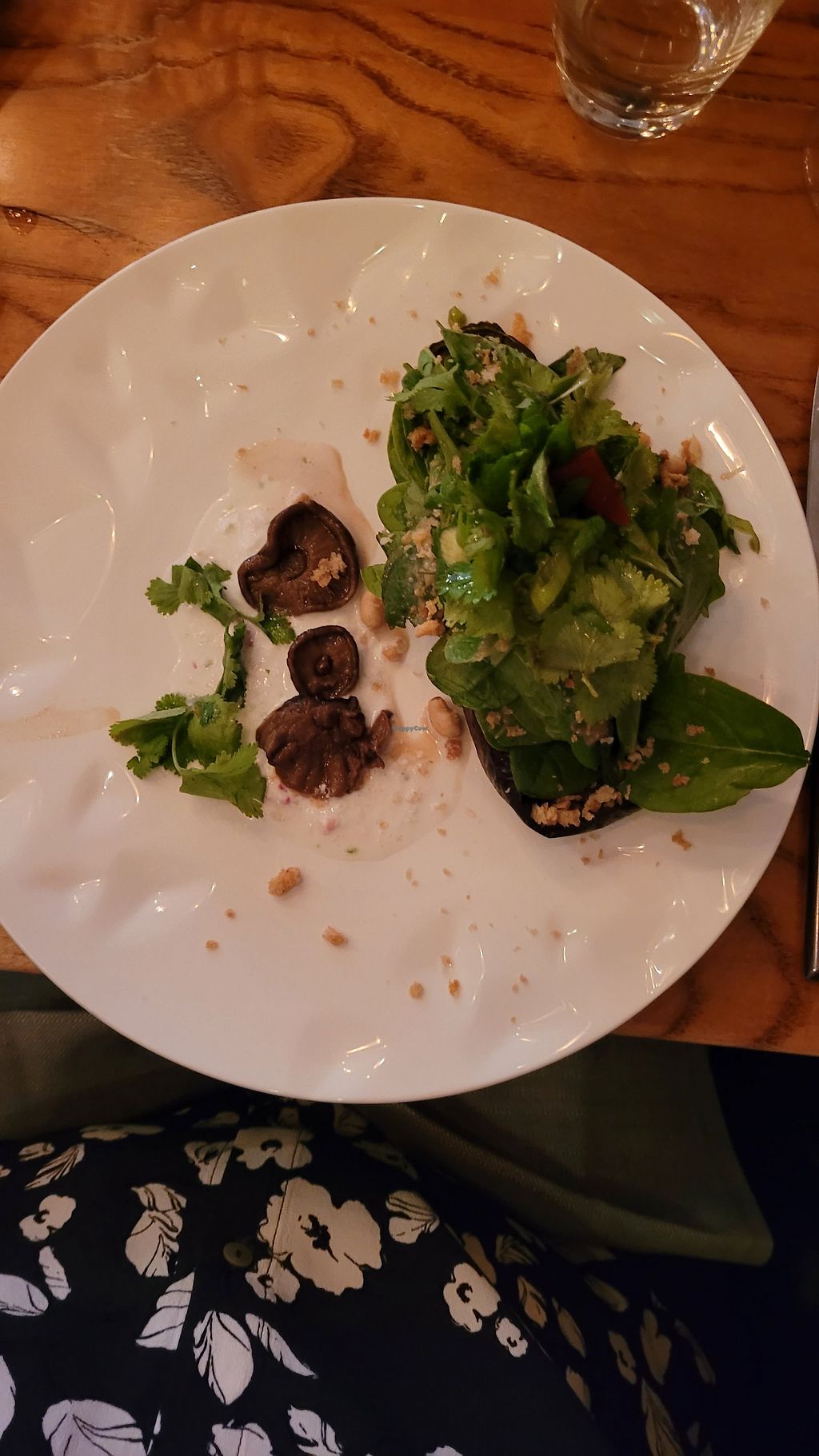 Blini made of cauliflower and parsnip, served with mushrooms (vegan)