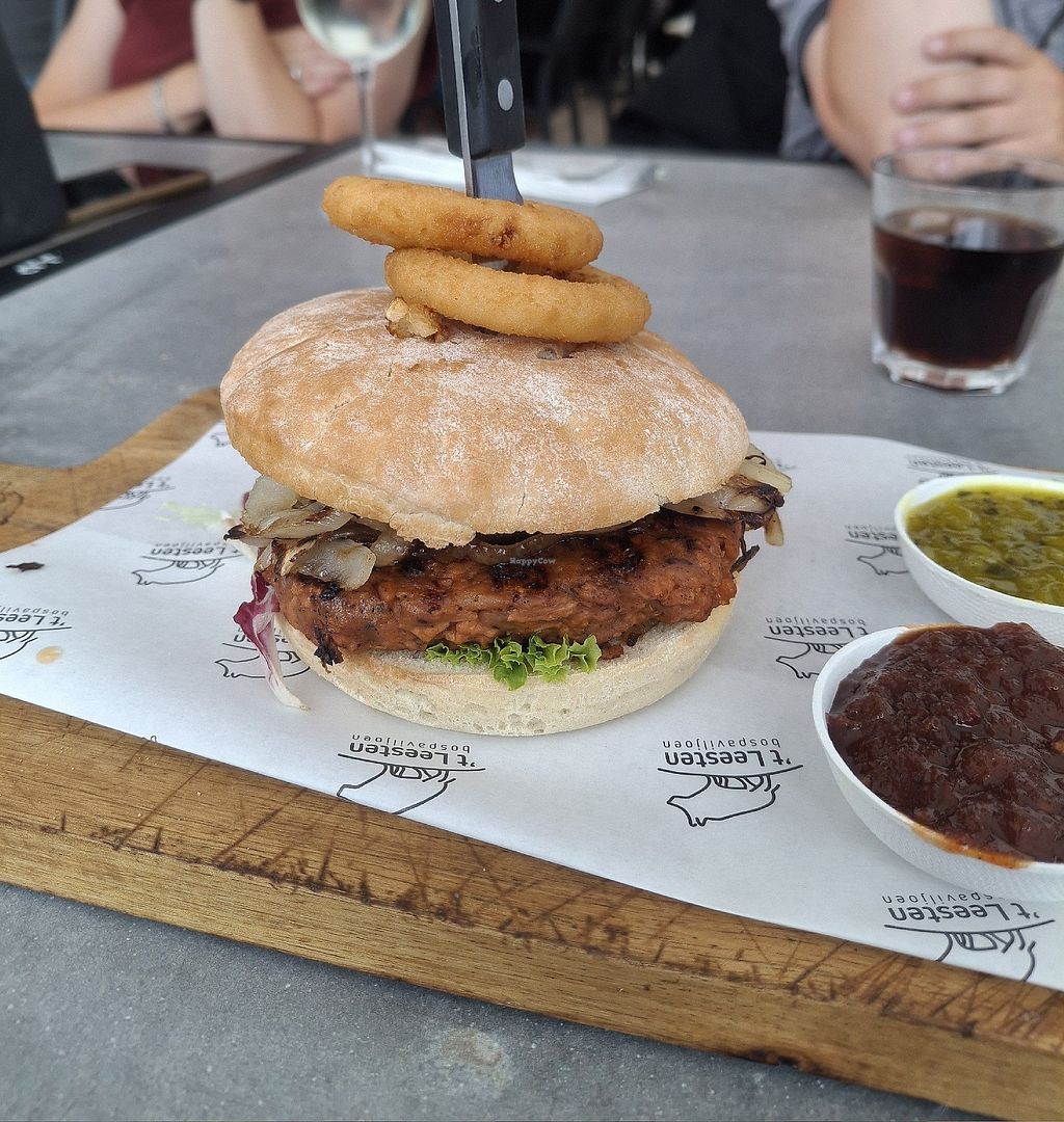 Heerlijke oesterzwam burger gehad. Echt heerlijk. Als dessert een iets aangepaste ijscoupe gehad. Met aardbei en citroen sorbet ijs en vruchtjes.