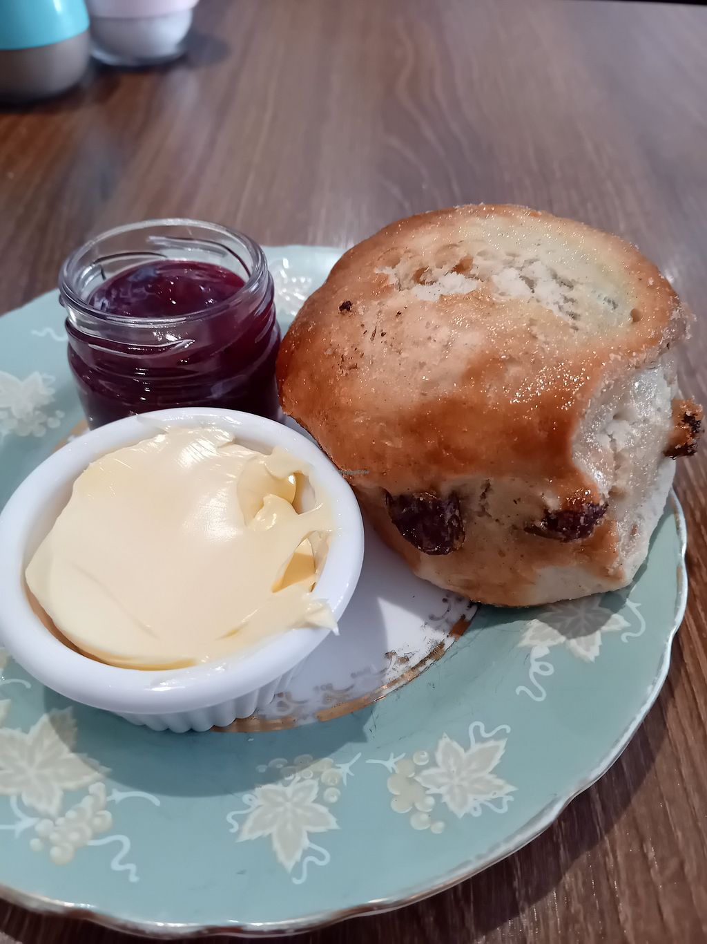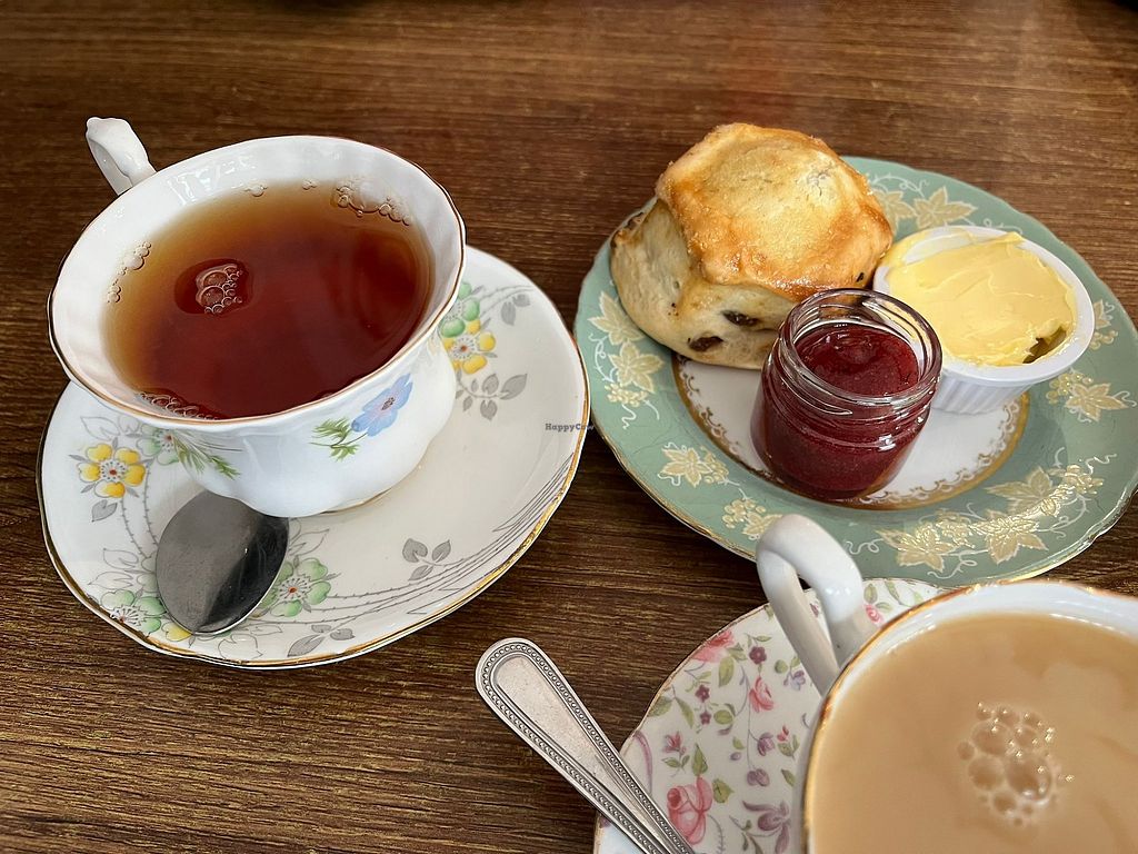 As a big fan of scones and cream tea we were happy to get there a nice selection of teas and a fresh&warm scone with vegan spread and jam. Also the vegan scone is only half the size than the common ones (don't know if they have different prices) it was very tasty. They also have cakes, snacks, milk alternatives... just ask for their vegan menue. Small dogs are allowed.
