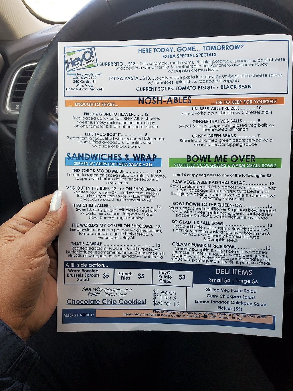 What a lucky find in downtown Mountain View, for vegans and non-vegans. Hey-O is a great option for us, and it just climbed to the top of our list of options. Highly and confidently recommended.