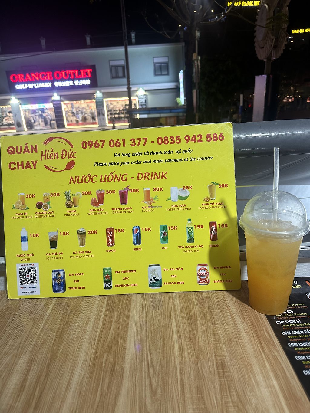 Tiem com chay Hien Duc is a vegan buffet shop that also offers bahn mi sandwiches. Basic setup. Relocated from 181 Nguyen Trung Truc, tt. Duong Dong. Phone: 1698039000
