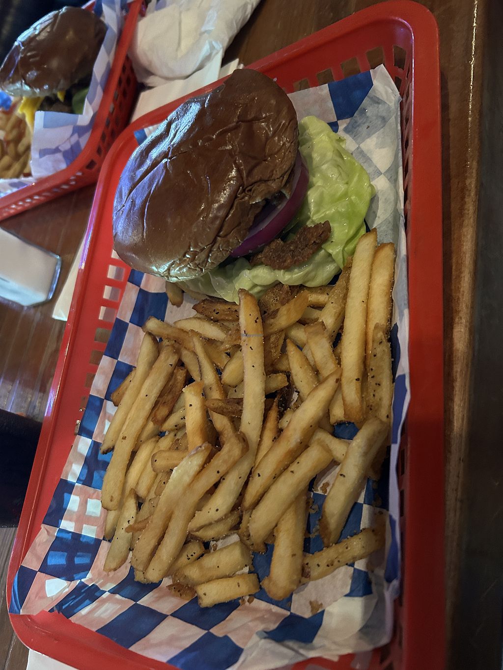 Vegan burger and fries