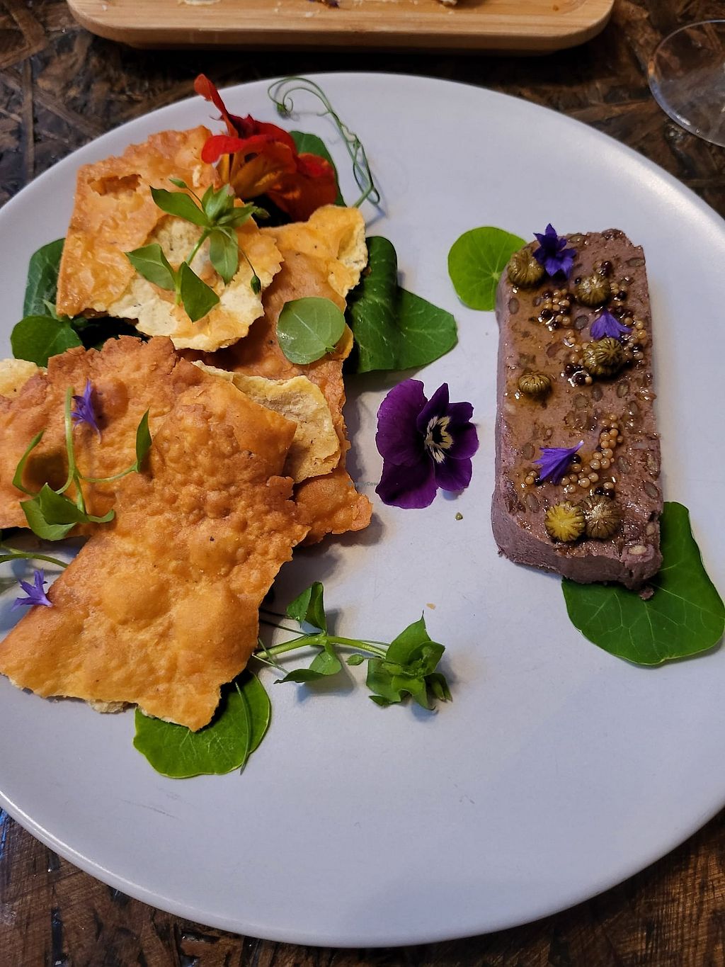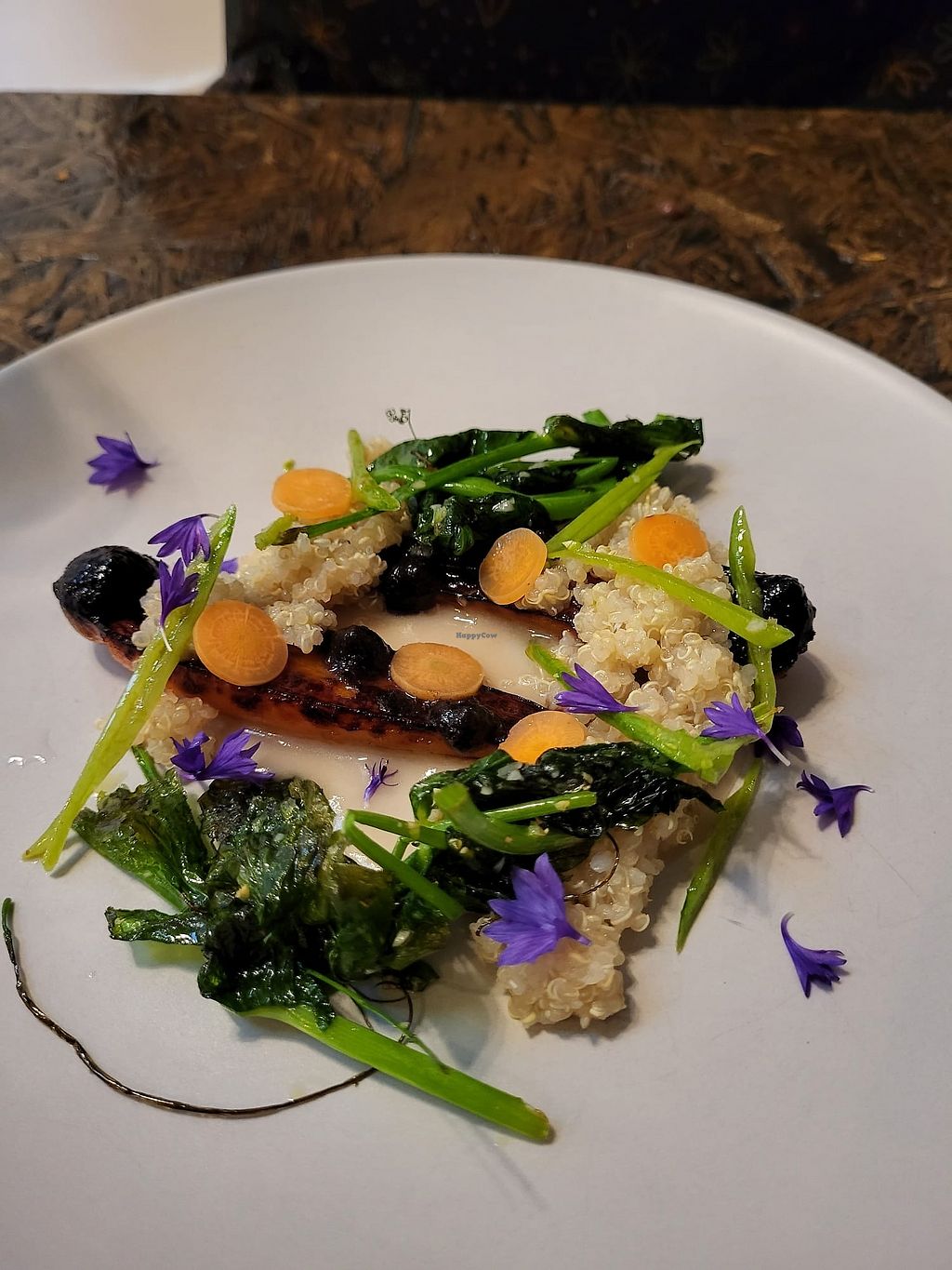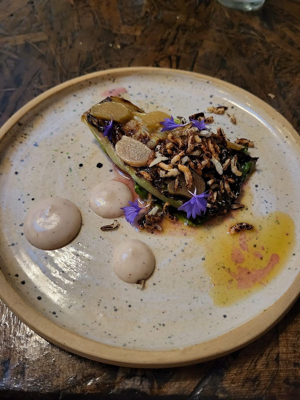 Kale salad, wild garlic dressing, fried tempeh, pickled wild garlic bu…