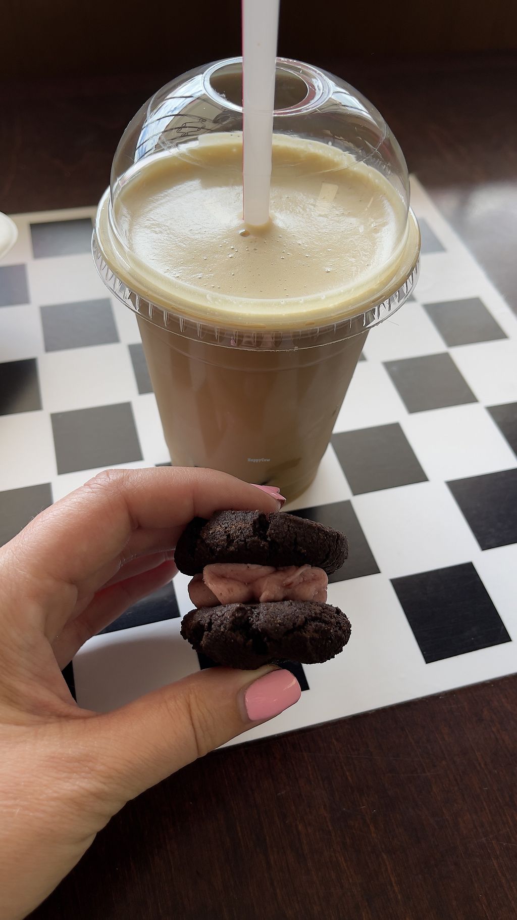 Oat milk, baked goods. The baked goods are not made in house. Great stop along the way to wherever you’re going for some cute vegan treats and coffee