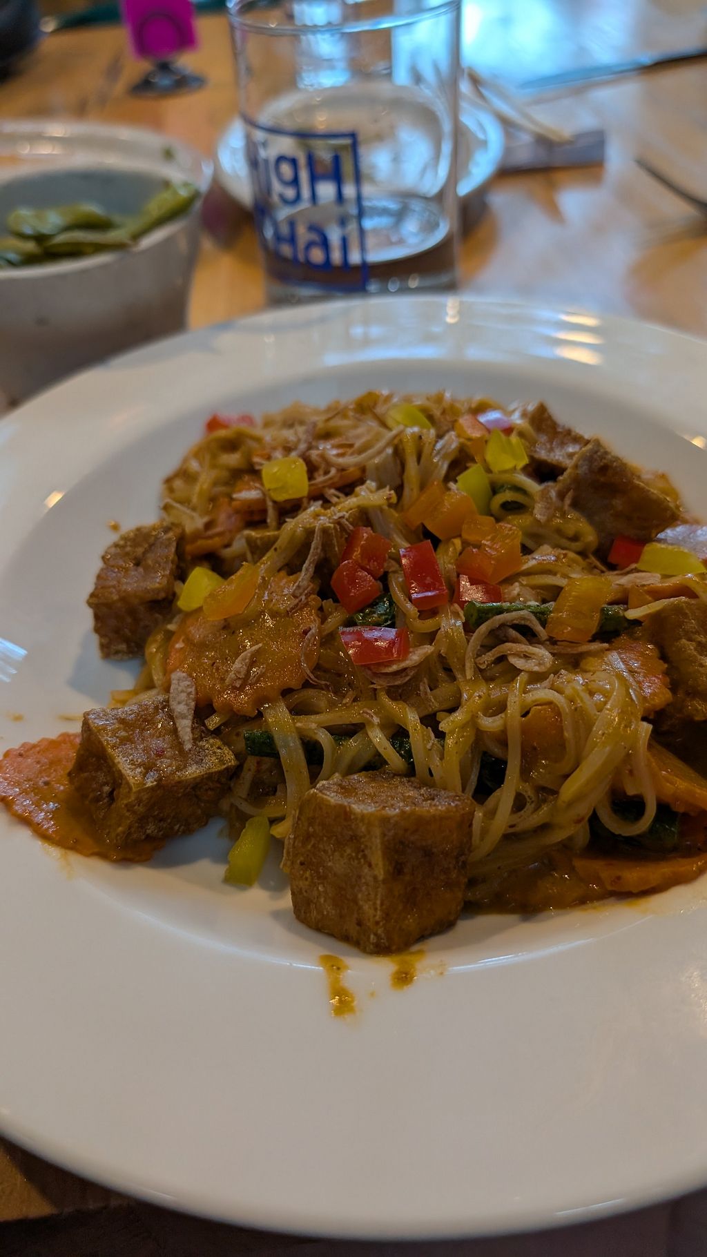 High Thai did a menu update recently and now the paper menu in the restaurant is very clearly labeled to show which dishes are vegetarian or vegan and when a dish may be modified to be vegan or vegetarian. This update was the result of a suggestion from the community and I really appreciated them taking the idea to heart to make the restaurant more inclusive and welcoming. My favorite dish is the peppery green bean appetizer and the yellow curry with tofu.