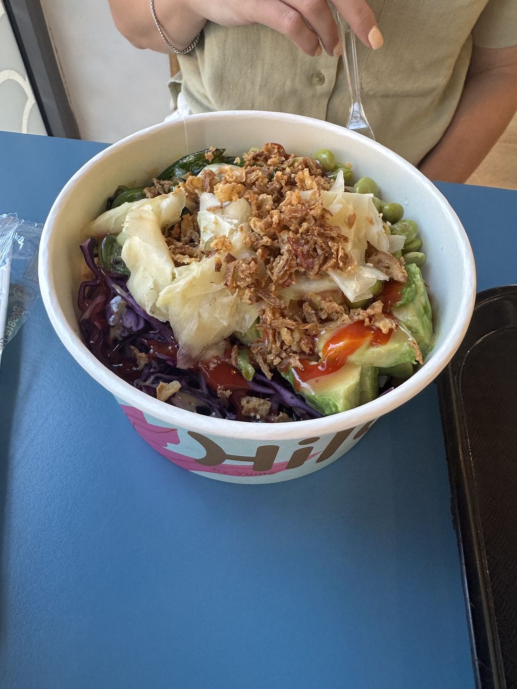 Had tofu option - note it is more a silken/firm tofu rather than super firm. Lots of veg and fruit options and toppings too. Very tasty and cheaper option.