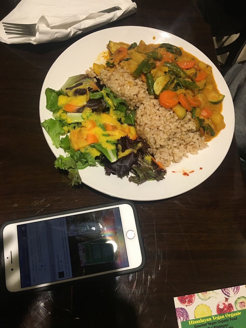 572 E Cotati Ave, Cotati, CA 94931 For a tiny spot in a Sunday evening it was reasonably busy and after eating here I see why. I just had the best chai maybe ever,and vegan coconut curry with added tofu. I ordered medium spicy and it was perfect. The side is salad or lentil soup. I got the lentil soup and it was also yummy. The serving more than enough. I took most of the soup and about 1/3 of the rice and curry. They have a delightful brown rice. The chai was creamy and unsweetened so I added honey but raw sugar is available. I am not a strict vegan but prefer to eat most of the time without animal products except honey. The Himalayan Cafe made it way easy and satisfying.