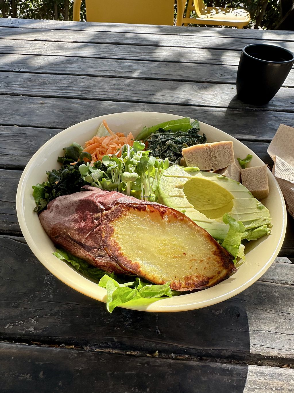 Lovely little spot in Ojai. Large menu and lots of tasty-looking food. I had the wagamama bowl, which was great and also treated myself to a few cookies. The patio is so lovely and serene, what a great atmosphere and an idyllic place to grab lunch. Highly recommend!