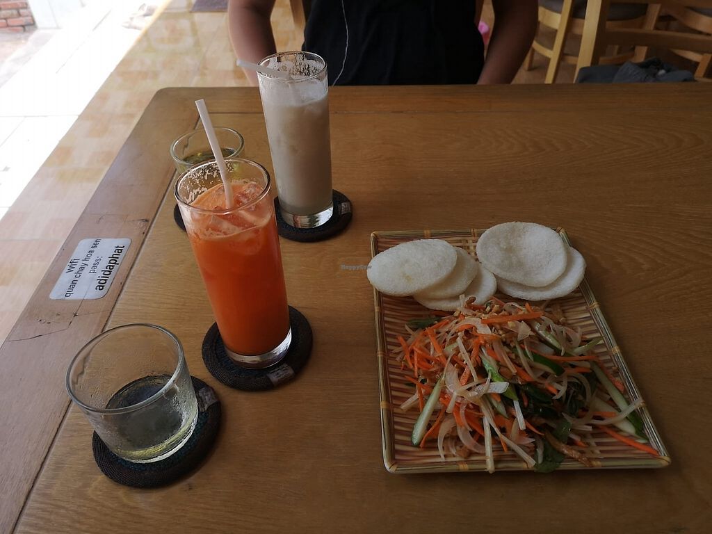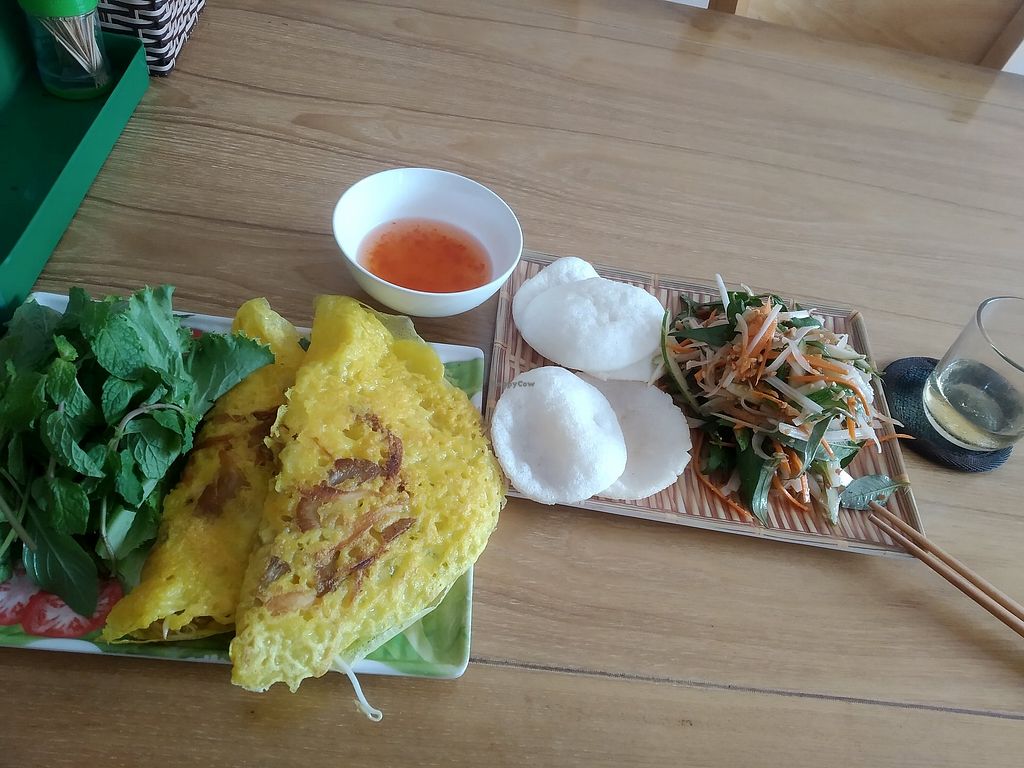We were very happy to find this place as there are not as many vegan options in Mui Ne as I expected (currently many seem closed, as it is a lower season for tourists). We ordered 4 dishes between 2 people and it was WAY too much food! The portion sizes were great, and my favourite dish was the Vietnamese pancakes, so good! Would definitely go back again!