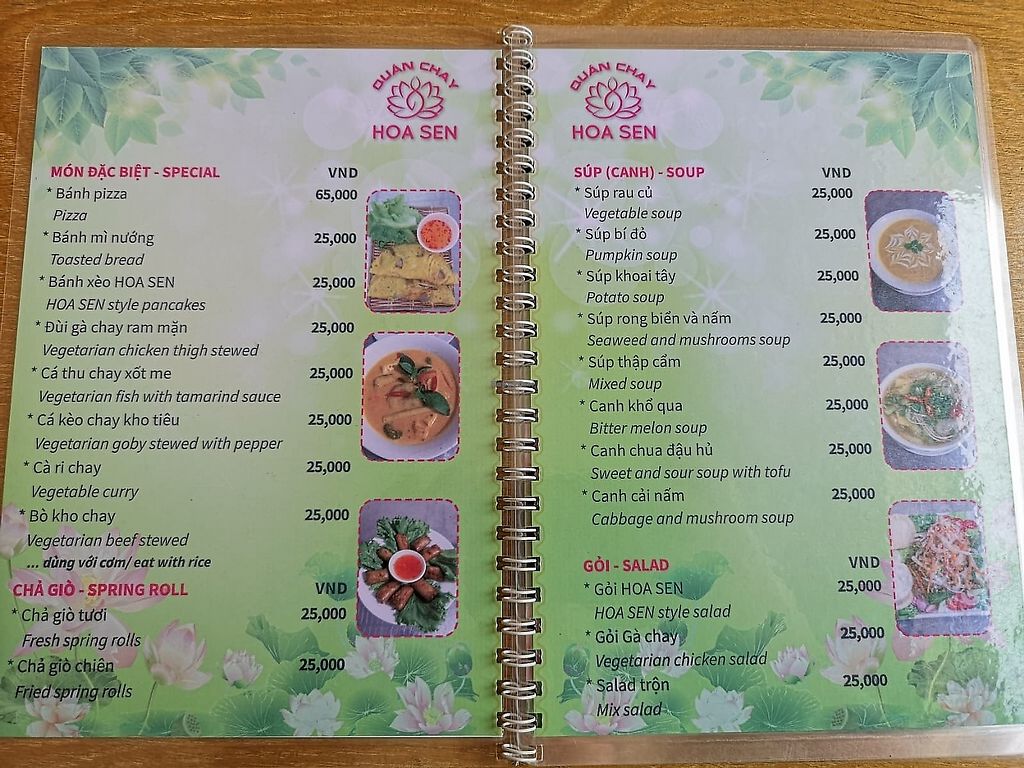 Healthy, flavor packed, deliciousness prepared by conscious folks. Dishes are 25,000 except a few like pizza which is 60,000. Pictured menu dishes actually represent the actual in both presentation and size. I swear the Buddhist chanting music in the background helps me to digest better and eat more slowly. Best Spring rolls And One of the best Mi Quang I’ve had in Vietnam.