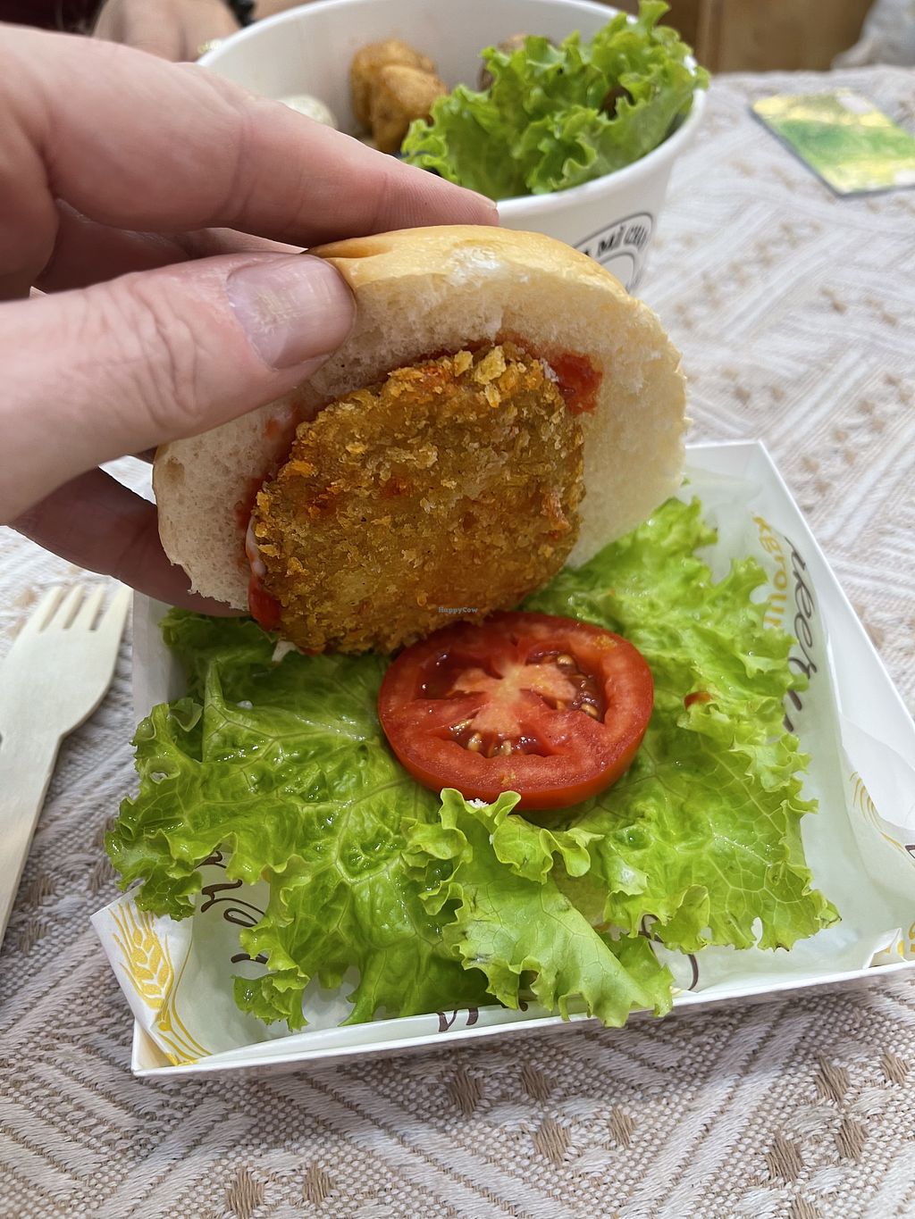 The coffee here was really good, which is unusual for a vegetarian place. However it’s not vegan. The bánh mì was okay… the bread was fresh and crispy, but the filling was too dry, bland, and had too much deep fried mushroom compared to the other fillings. It was better after adding some soy sauce and chili sauce, but those weren’t out on the table, I had to ask for them. The space isn’t too clean either, the tables needed wiping down and one was covered in leftover food and drink. Also the coffee came in a disposable plastic cup even though I was eating in, which is quite wasteful. I’m not in a rush to eat here again.