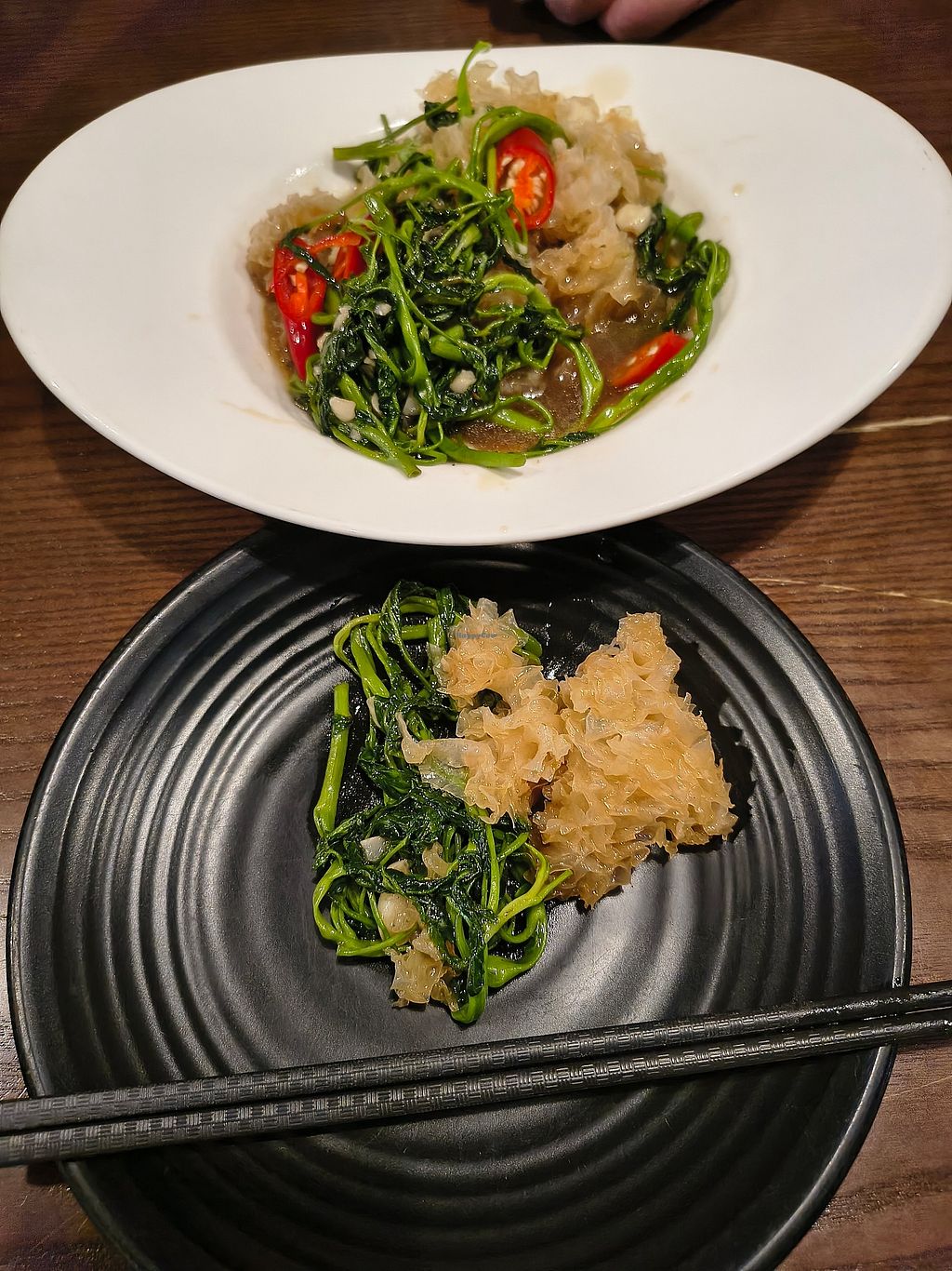 There was a separate section of the menu for vegan food and lots of choice! As recommended by a previous reviewer, I had vegan beef with lemongrass and chilli and morning glory with snowfungus! It was all delicious but not spicy (I like spice)! The mock meat looked so real my husband thought it was his! The snow fungus is a bit like lacy noodles and absorbs flavour beautifully! I intend to return and try some other dishes!