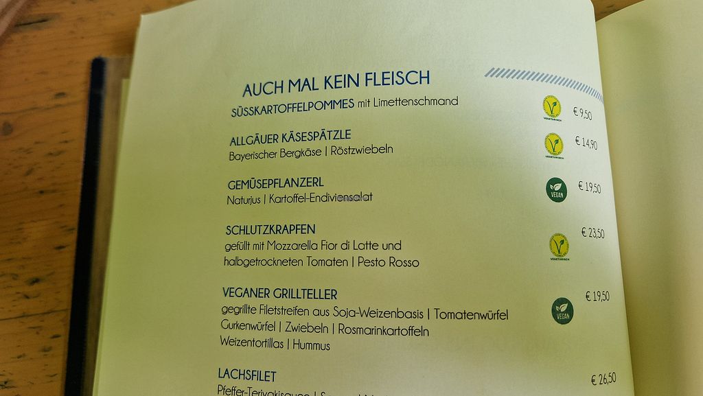 Serves meat, vegan options available. Classic Bavarian restaurant and beer garden. Offers vegan or adaptable choices such as "pflanzerl" (Bavarian patties) made with vegetables, colorful quinoa bowl with vegan meatballs, grill platter and French fries. Open Mon-Sun 11:00-23:00.