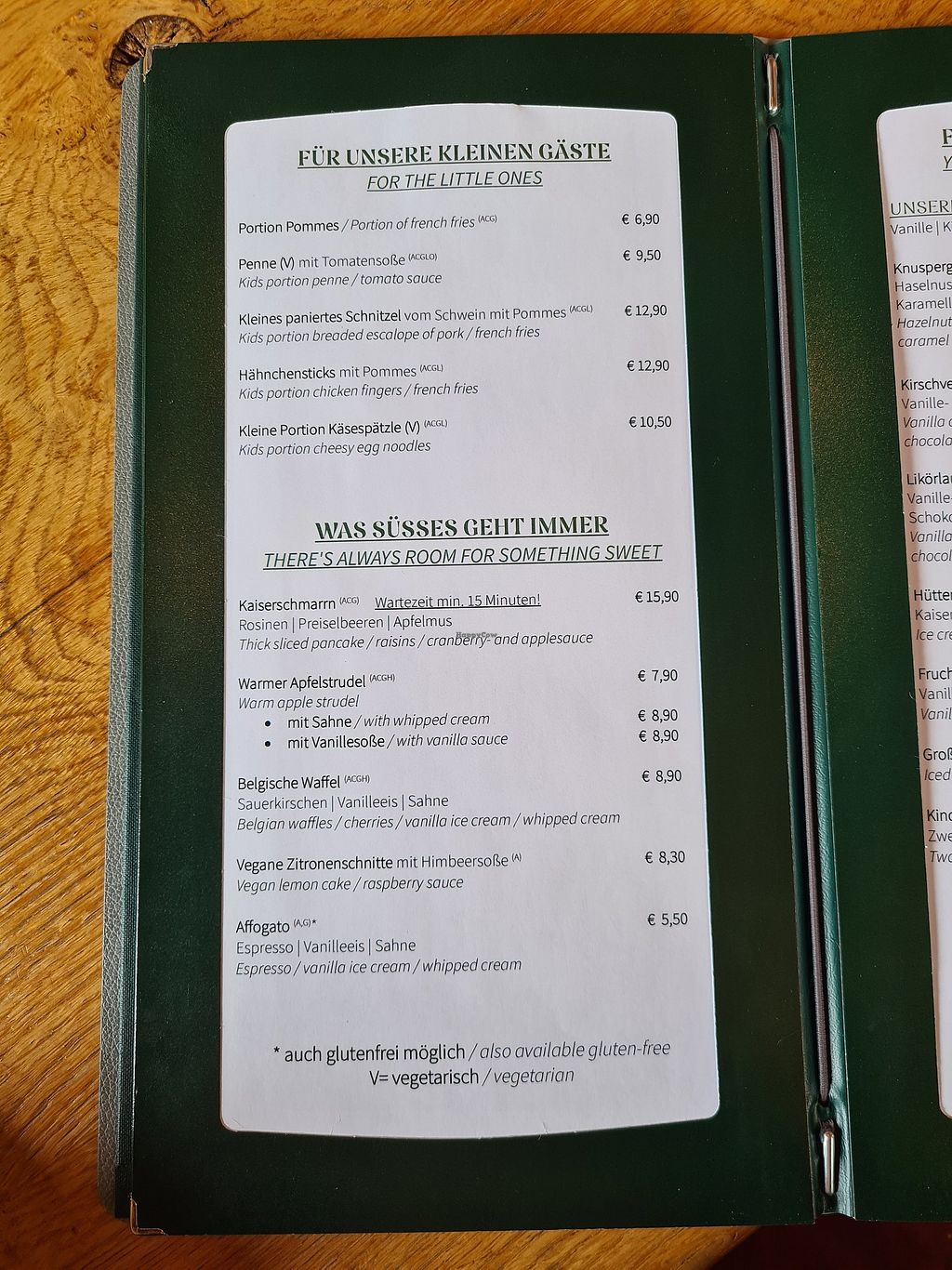 Auf der Alm bekommt man eine tolle große Portion vegane Gnocchi mit Pesto. Das Gericht ist ansehnlich hergerichtet mit frischen Sprossen. Wir waren sehr zufrieden und satt.