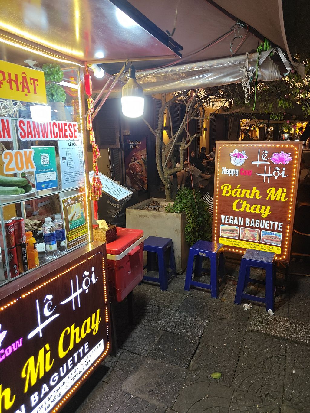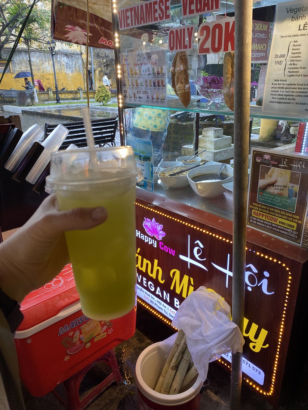 See the title. Little banh mi stall next to another drinks stall selling banh mi chay for 20k each. Bread is crisp, good filling, what else do you need???? Go here if you want more fillings and more flavour than the more well known option Banh Mi Phuong. Amazing amazing chilli sauce/oil.