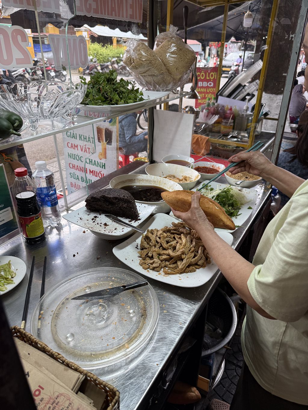 This is a cute stall run by one woman. The bread was soft and the ingredients were good. I loved seeing her make it there in front of me.