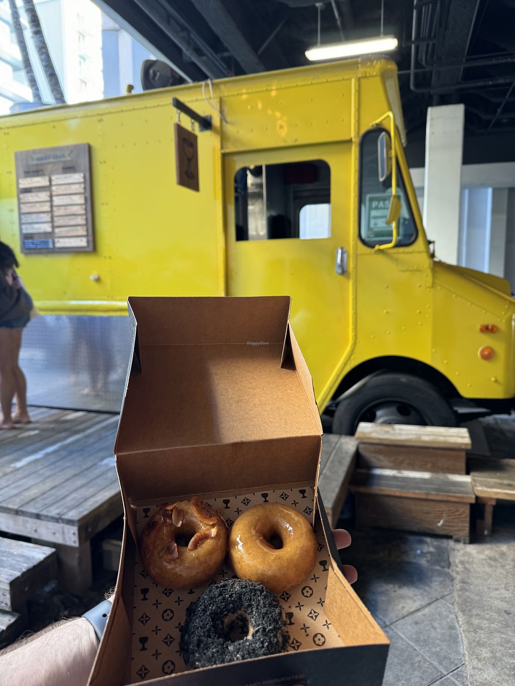 The alley this food truck is in smells weird. But I can't blame them for that. The donuts are made to order and delicious. Warm, fluffy and flavorful. Unfortunately, they make their own nutmilk, and it sucks. Their iced coffee is premixed with this "mylk" and it's grainy and watery. It lacks the fatty mouth feel or sweetness of most conventionally produced milk alternatives. Go for the delicious donuts and skip the gross coffee.