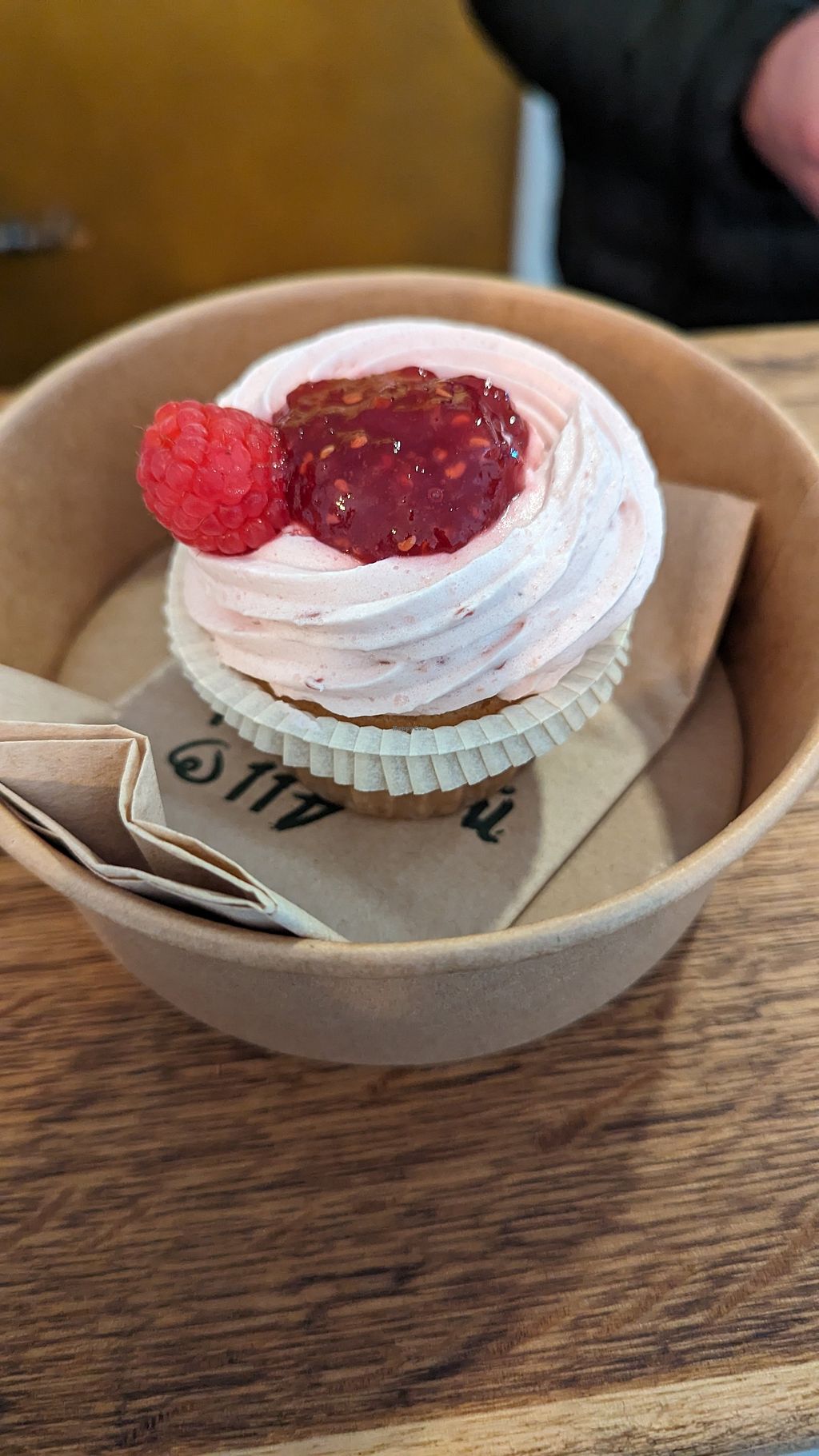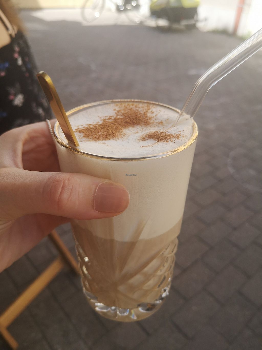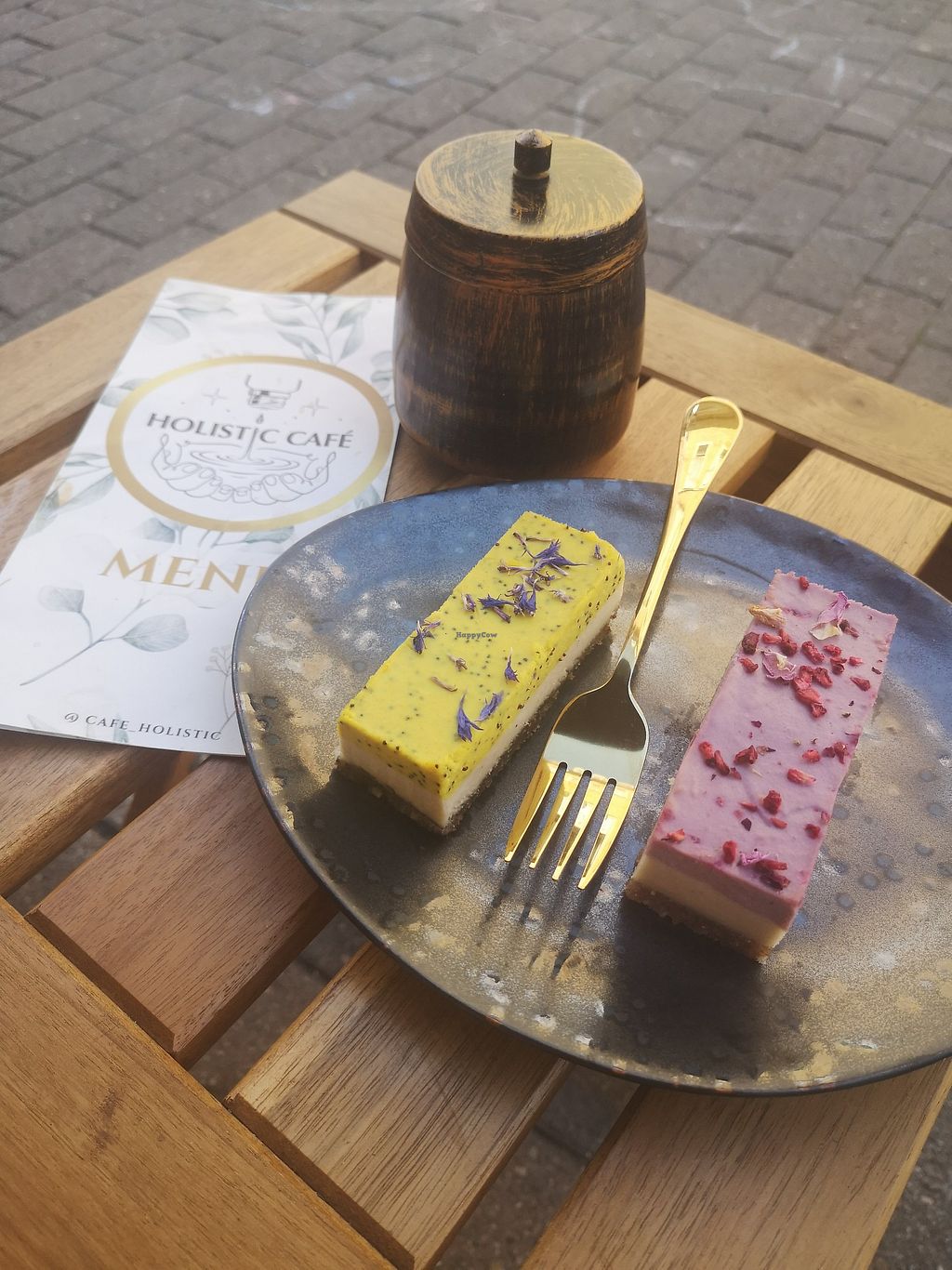Holistic latte (front), chai latte (back) and two fruit-yoghurt bowls …