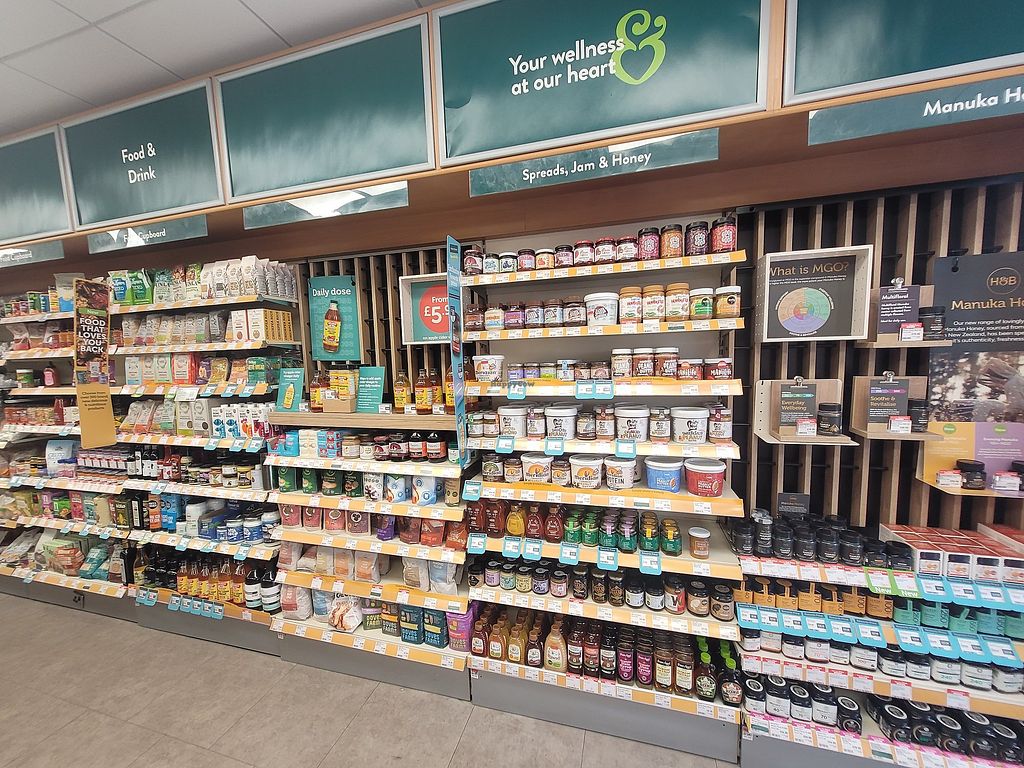 The Bangor (Gwynedd) Holland & Barrett store is a comparatively small branch. They stock nothing outside of the typical Holland & Barrett range at this store. There is no freezer and and only one fridge stocked only of drinks. Decent amount of vegan jarred goods and vegan snack food. The guy working here was super nice. The independent health food shop Dimensions in upper Bangor or the Llandudno Holland & Barrett generally have better options for vegans.