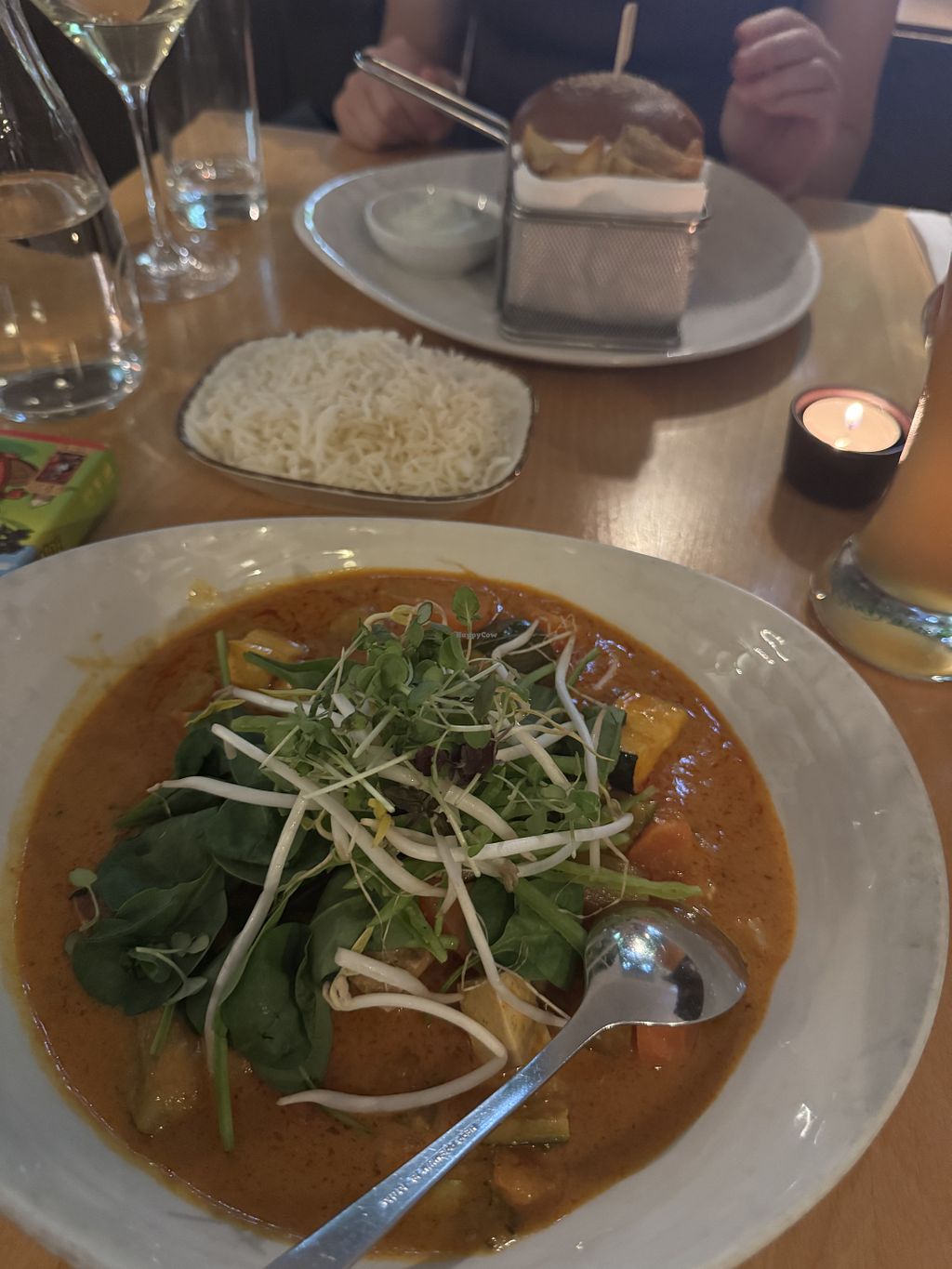 Red Thai Curry (mostly vegetables, some tofu), white rice