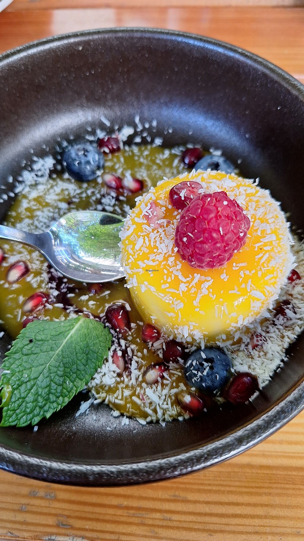 Vegan Panna Cotta (coconut based) with fresh berries and coconut flake…