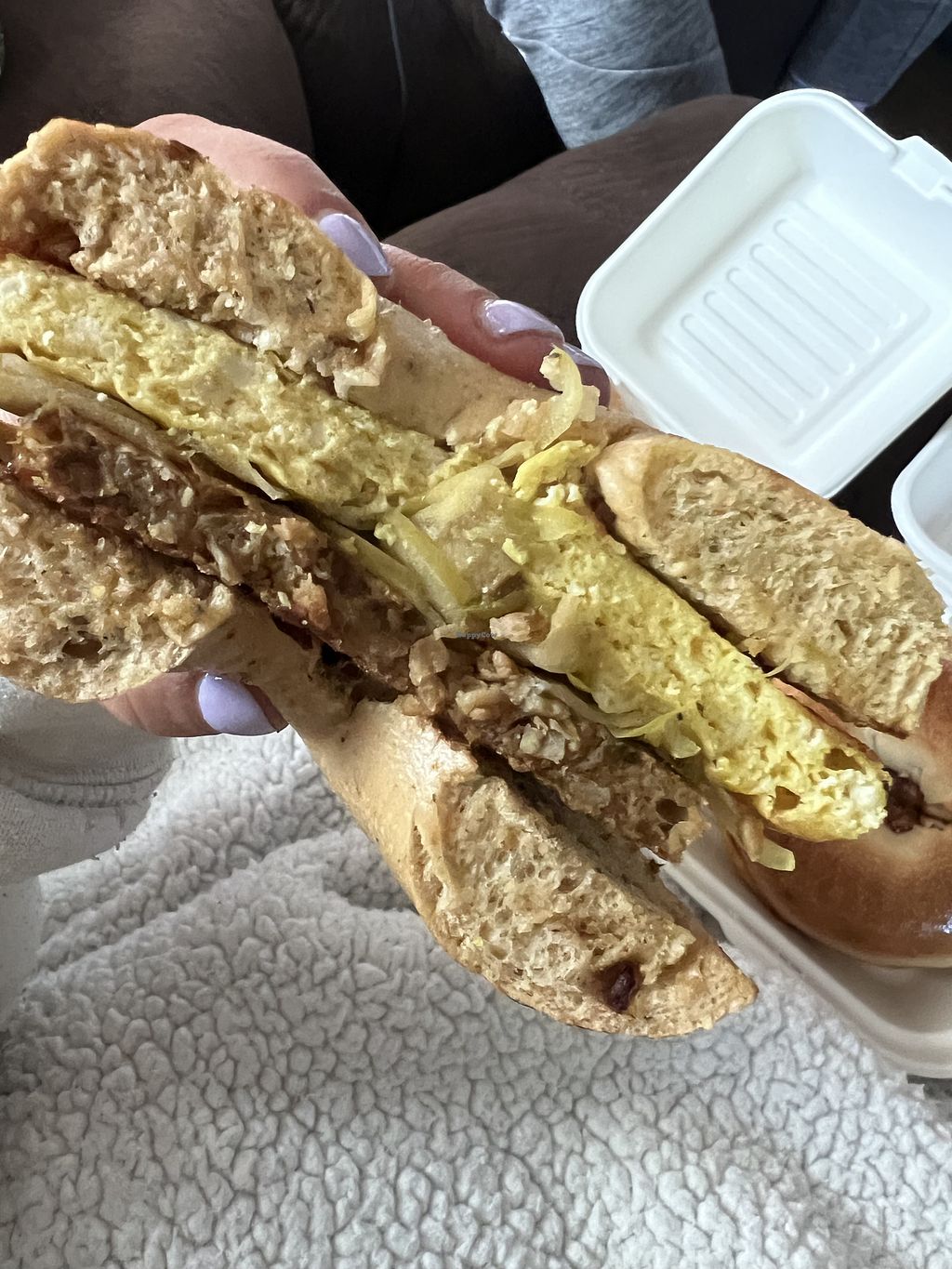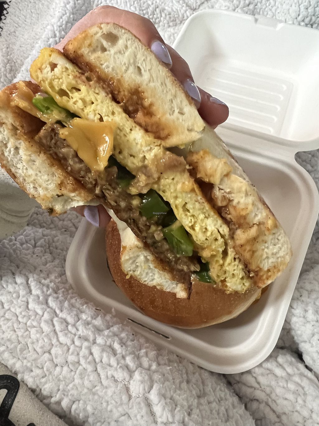 Got a breakfast sandwich to split with my partner, and it was excellent! It was large enough for us to split and feel satisfied. I also got a cold brew coffee with cold foam, which was a pleasant treat as I don't usually see that option for vegans. I look forward to going back to try more of the menu items!