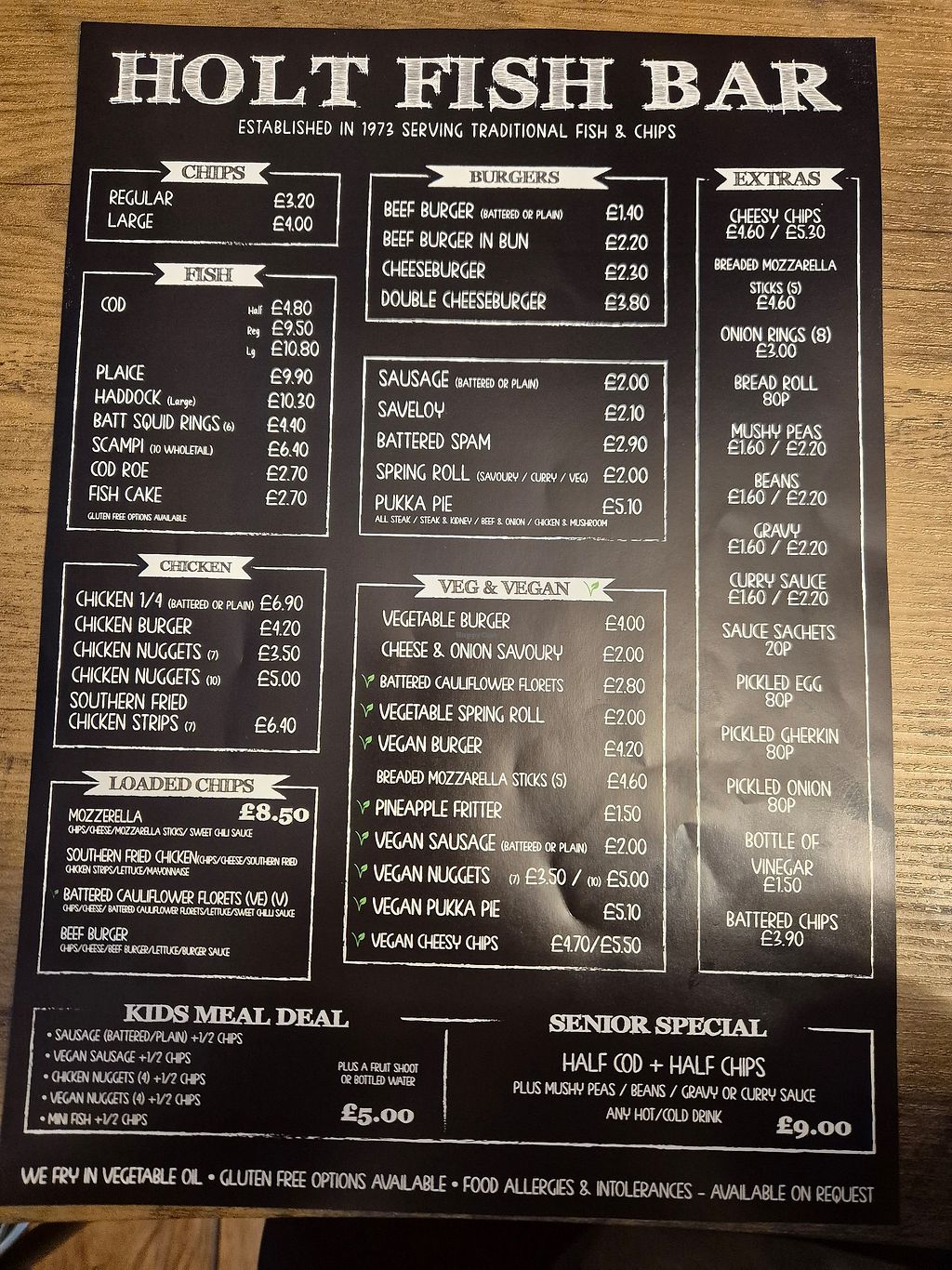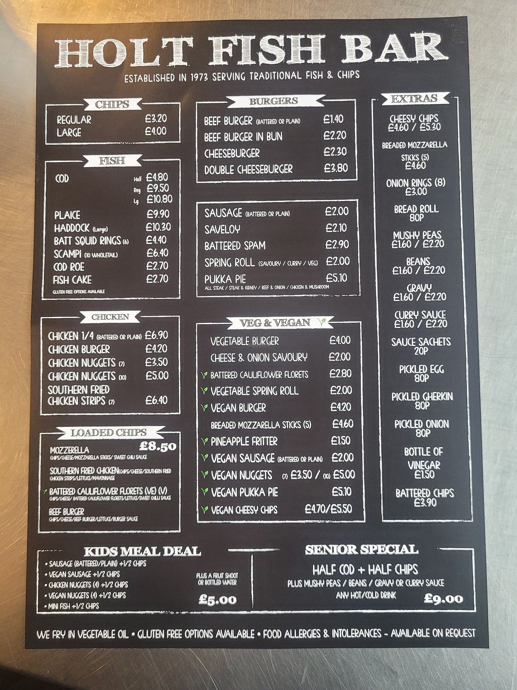 Menu with lots of vegan options