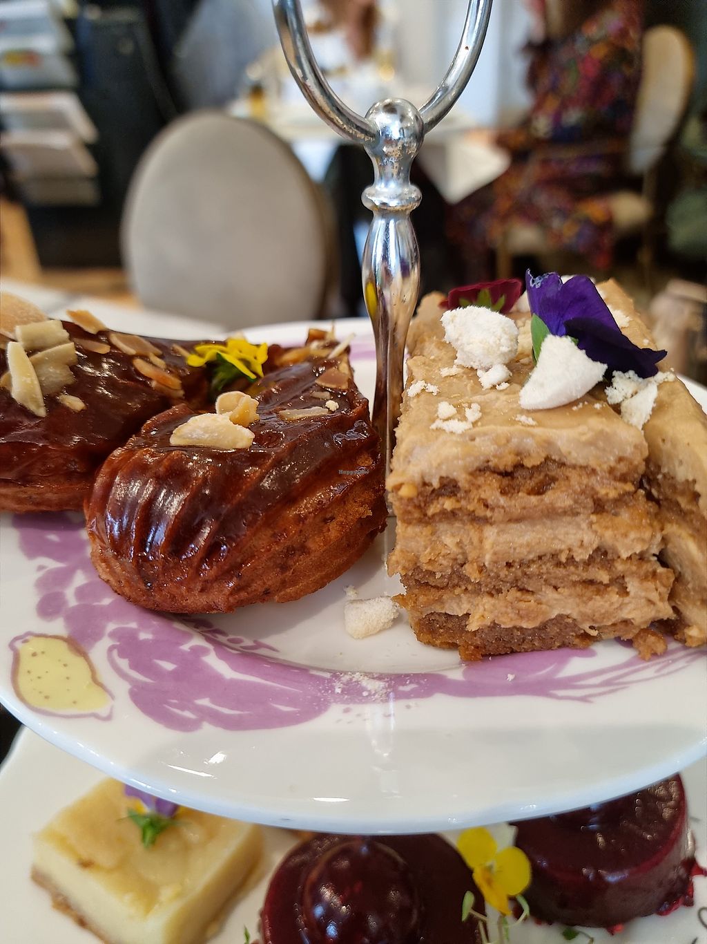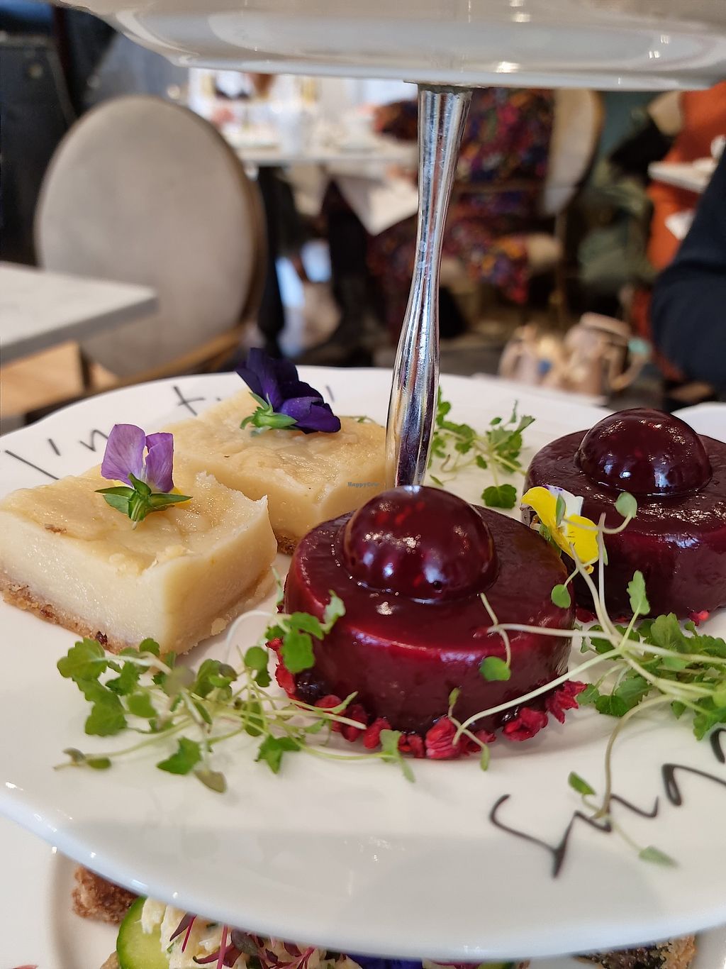Truffled scramble tofu, smoked ‘salmon’ bagel and apple and cinnamon p…