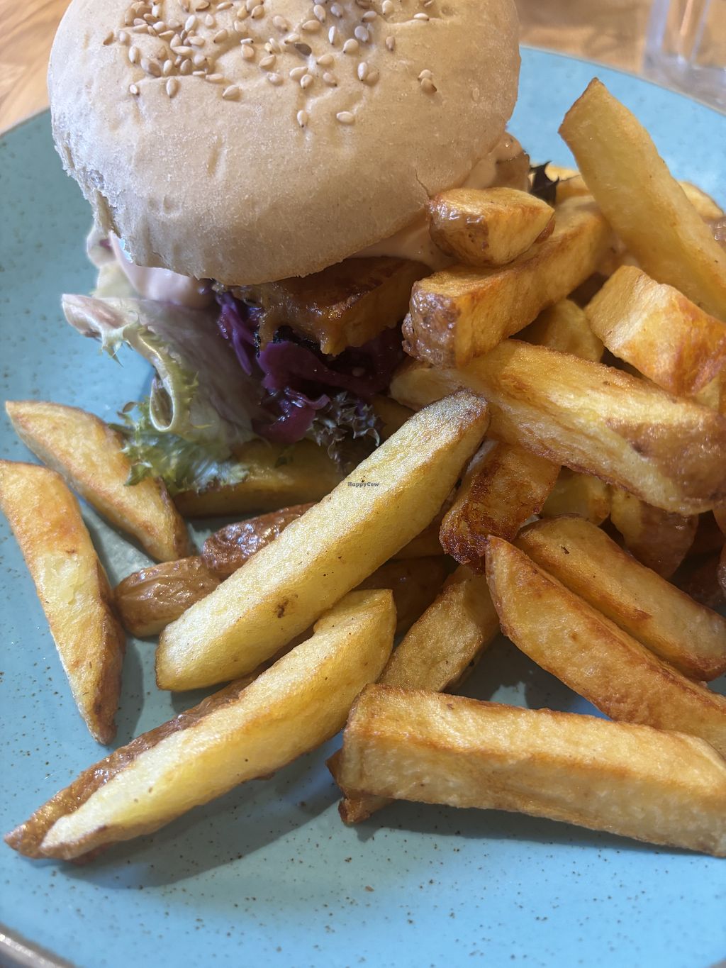in the front the vietnamese style tofu burger and in the back oyster m…