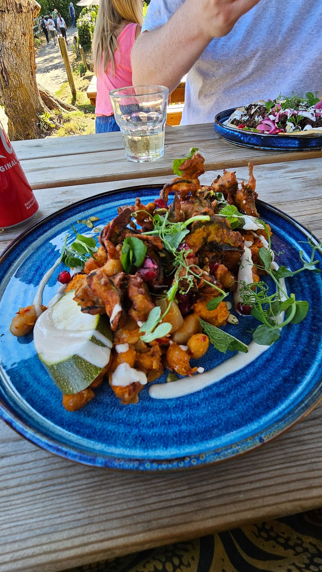 Delicious samphire fritters with pickled courgettes, pomegranite and butter beans. A couple of vegan dishes but several dishes can be made vegan.